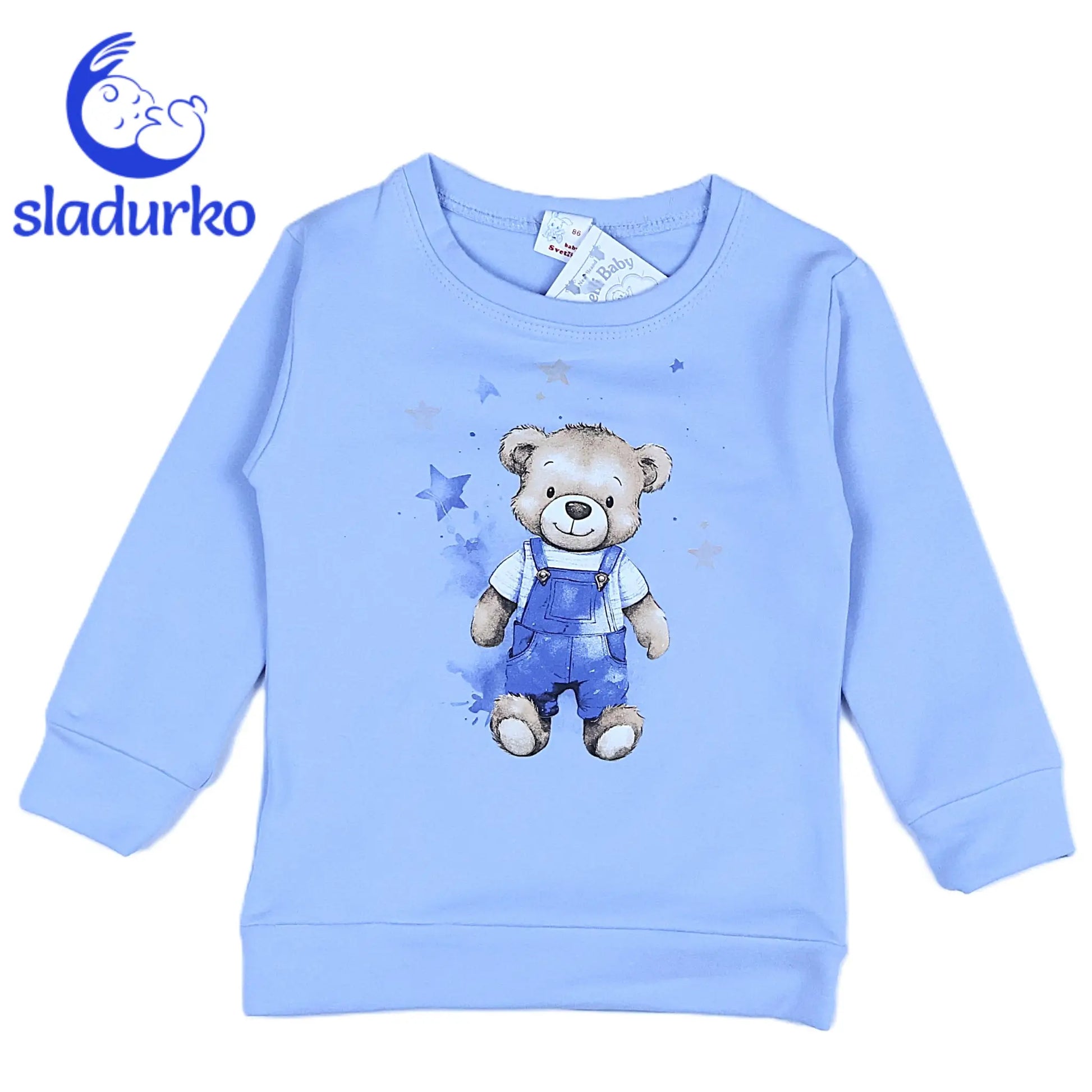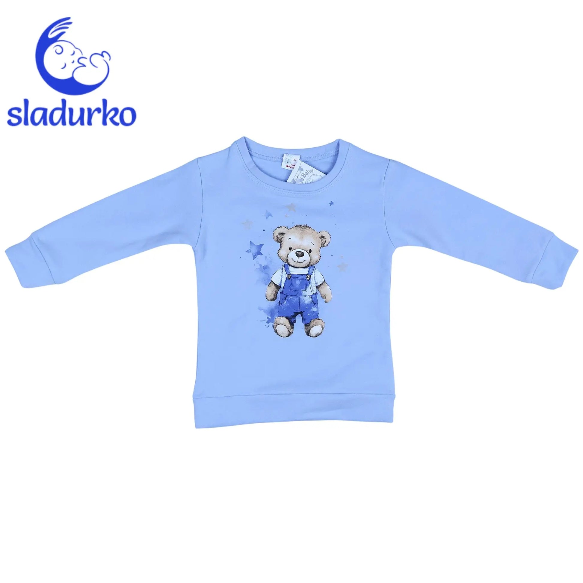 Бебешка блуза с дълъг ръкав – Синя, с мече