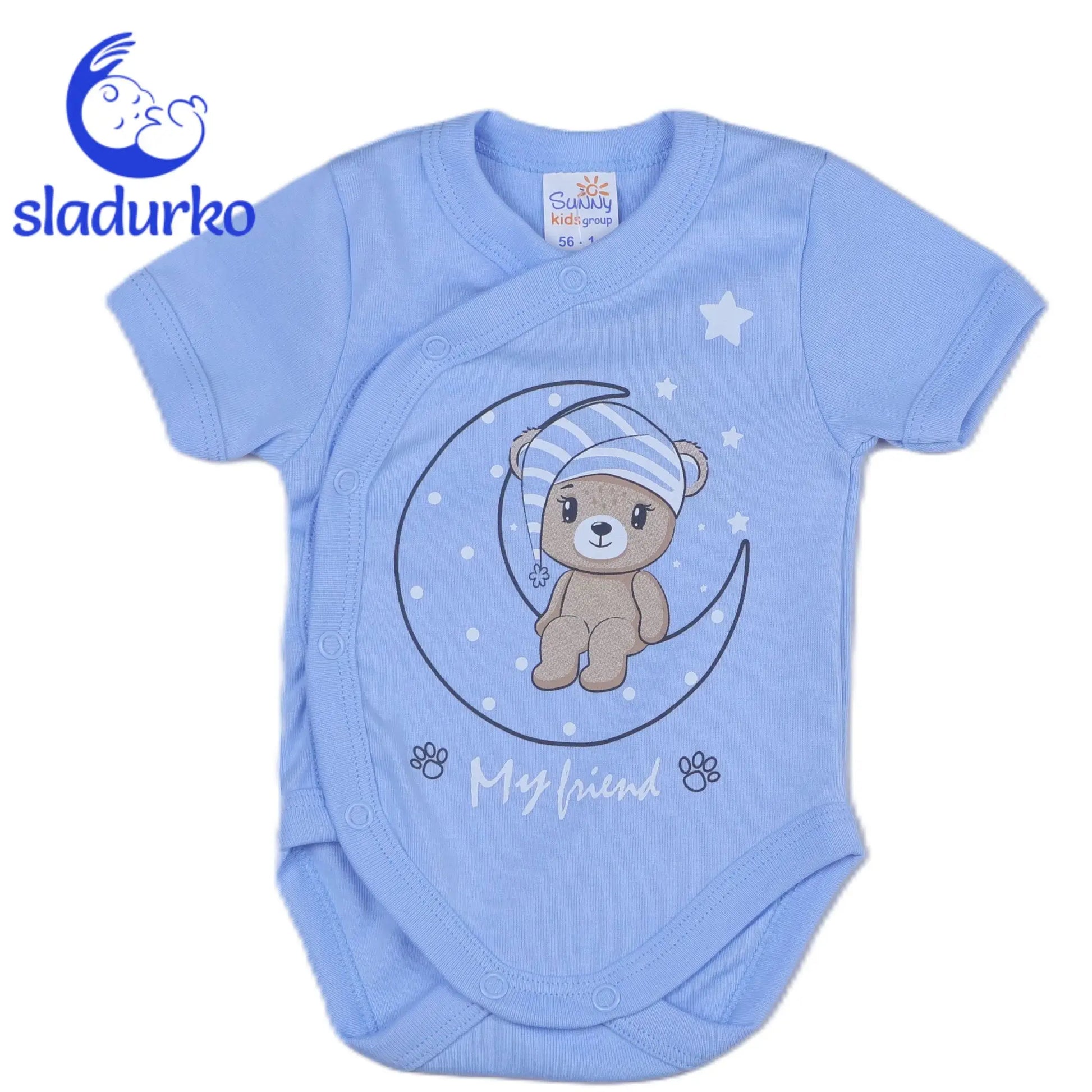 Синьо боди с къс ръкав със странично закопчаване "Моят приятел" е идеалното облекло за вашето бебе. Изработено от мека и дишаща материя, осигурява комфорт през целия ден. Страничното закопчаване улеснява обличането и събличането, дори и на най-малките бебета.