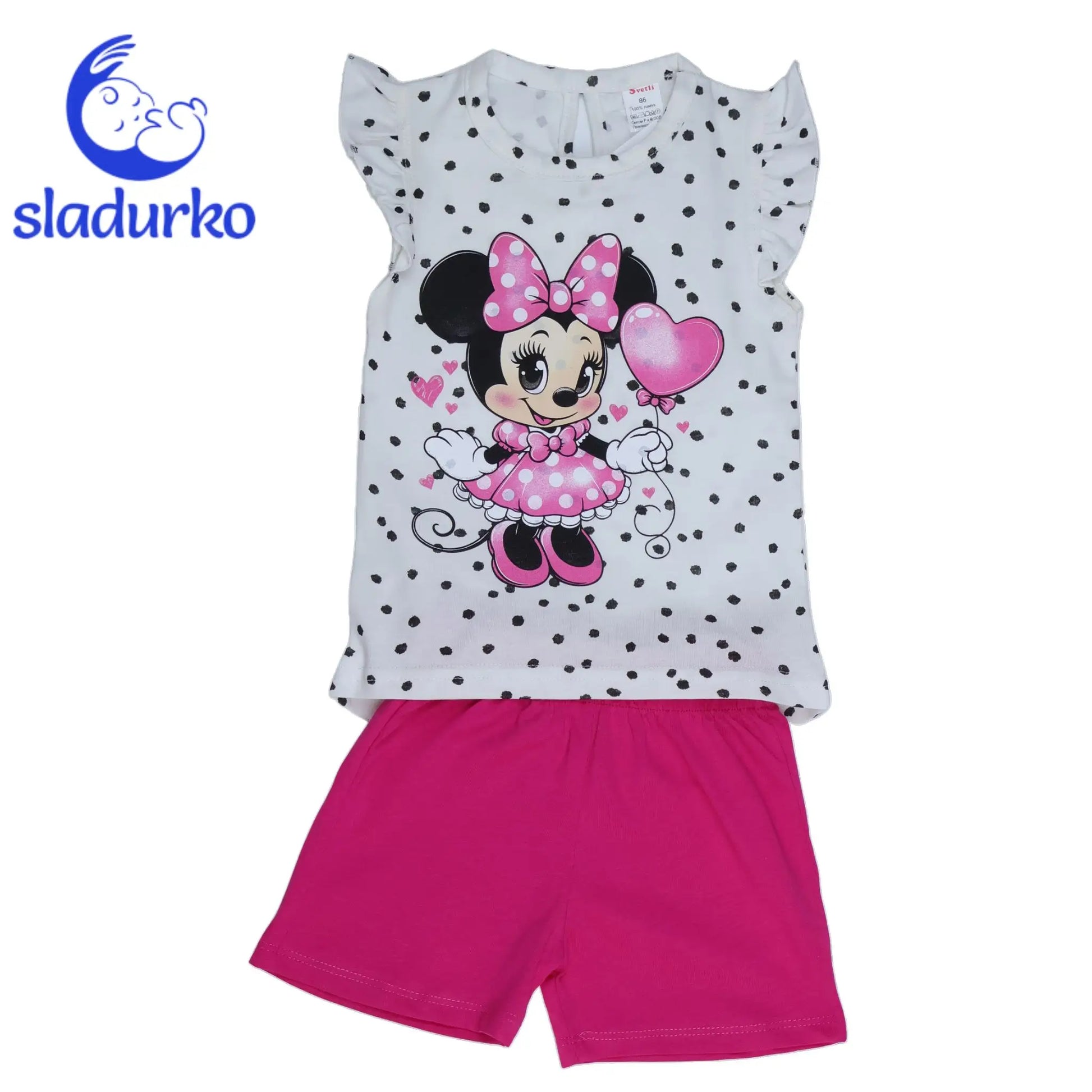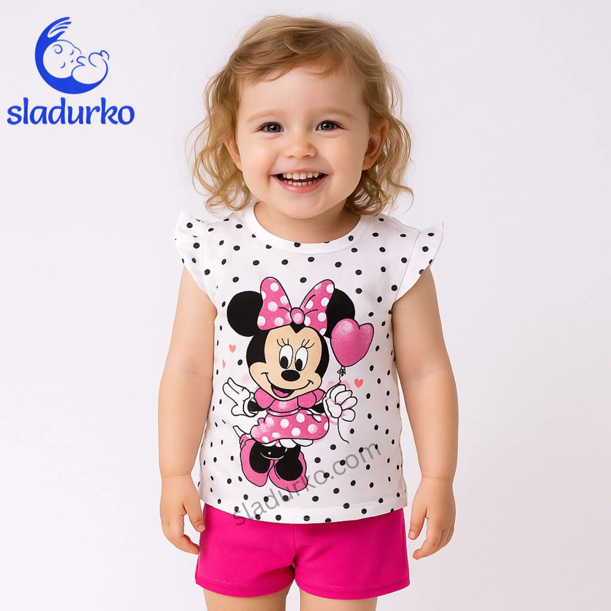 Детски комплект за момиче с блузка и къси панталонки - 100% памук