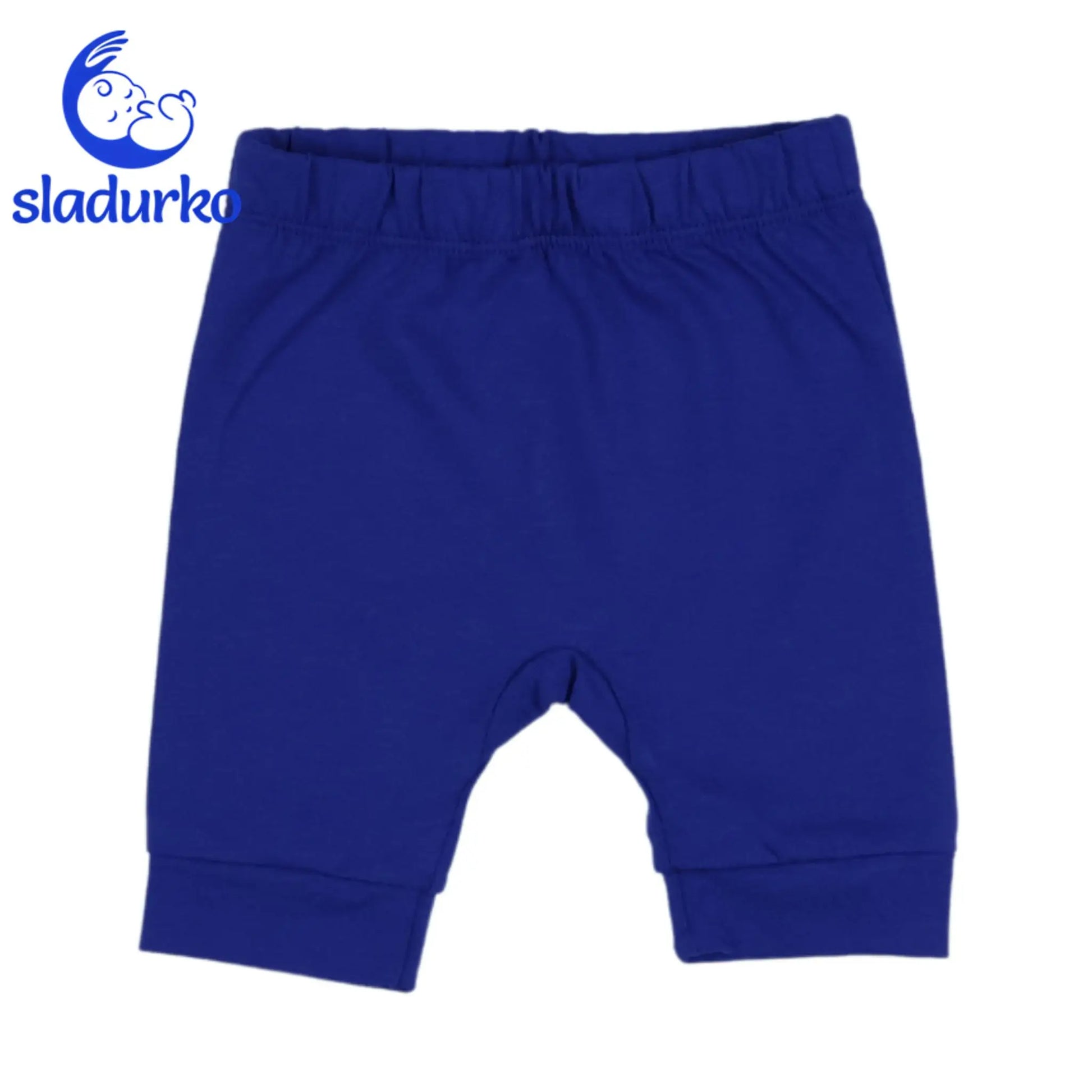 - Къси панталонки: Наситено сини къси панталонки с еластична талия за удобно прилягане.