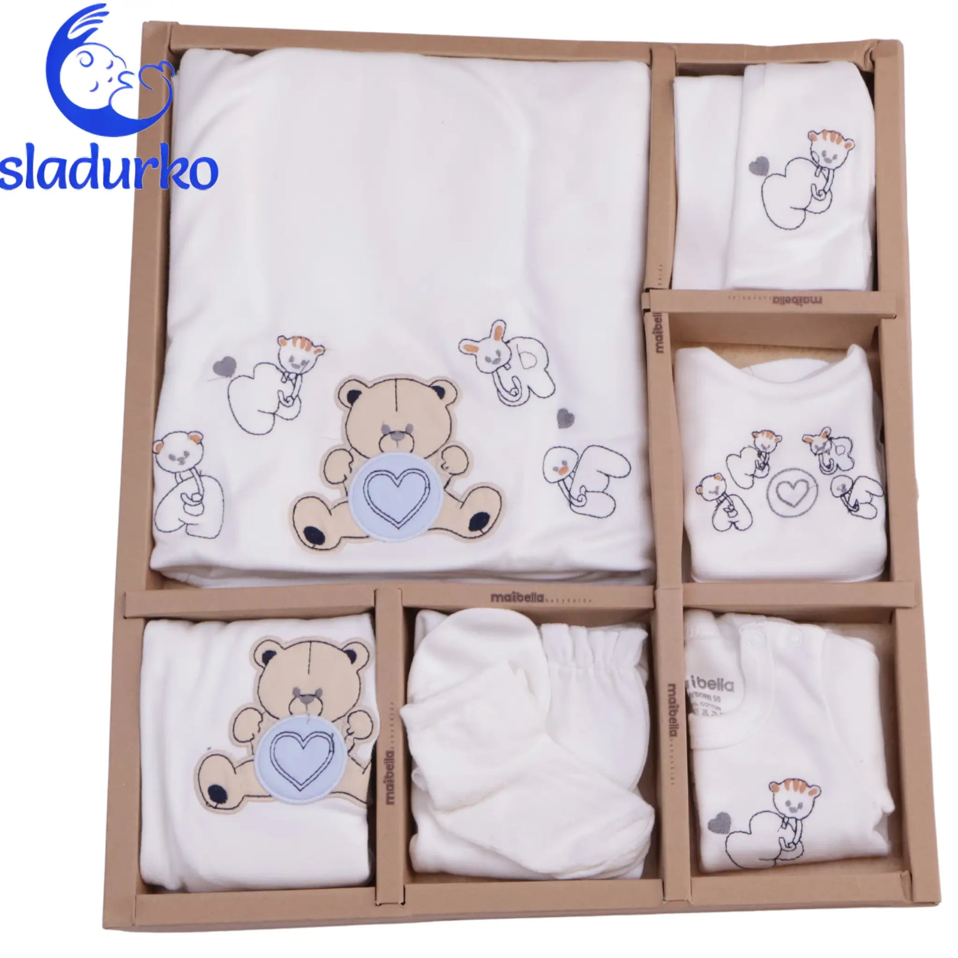 Посрещнете вашето малко момченце с нежност и стил с този очарователен комплект за изписване от 10 части в! Украсен със сладки мечета, този комплект е идеален за първите моменти на вашето бебе, осигурявайки му комфорт и уют.