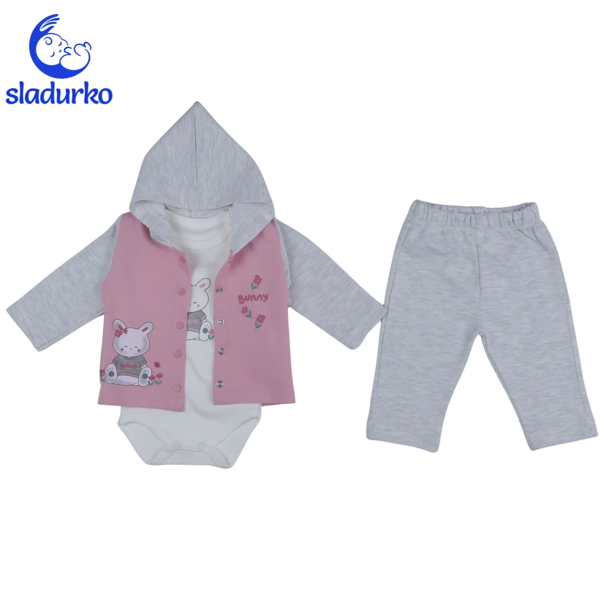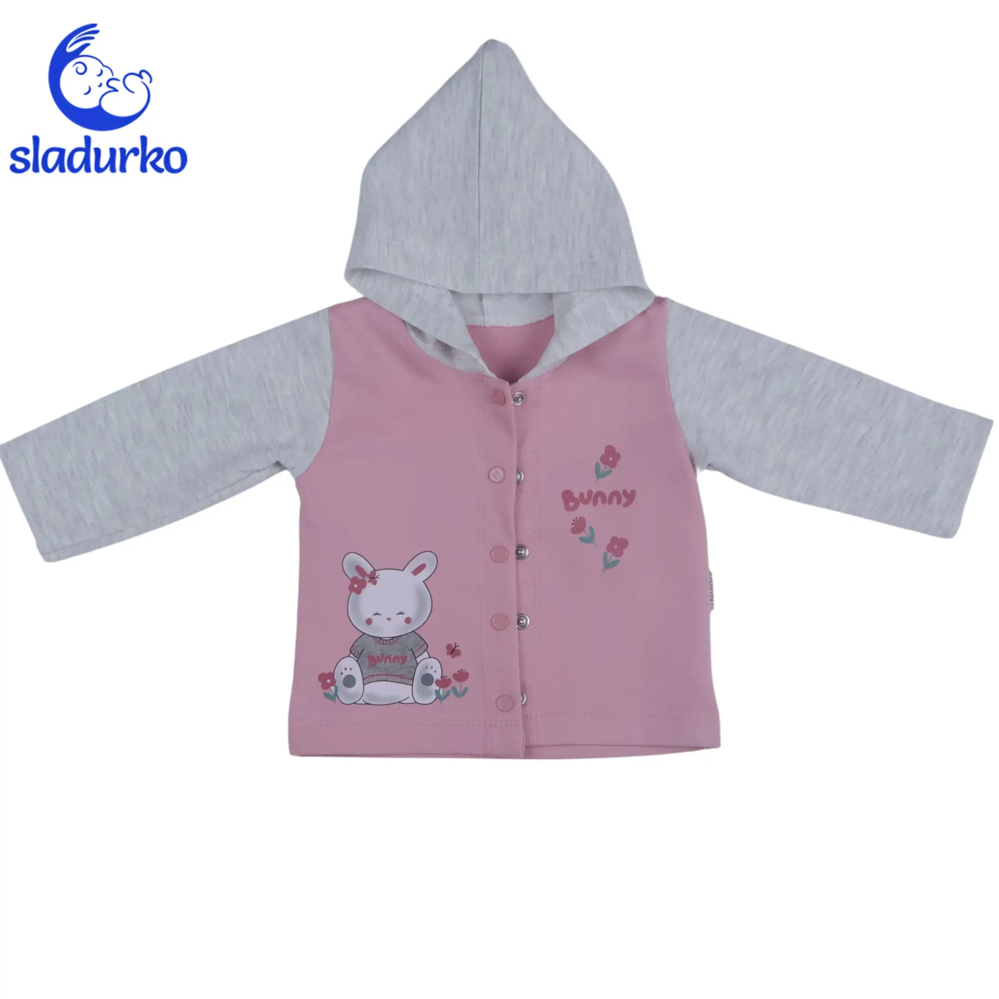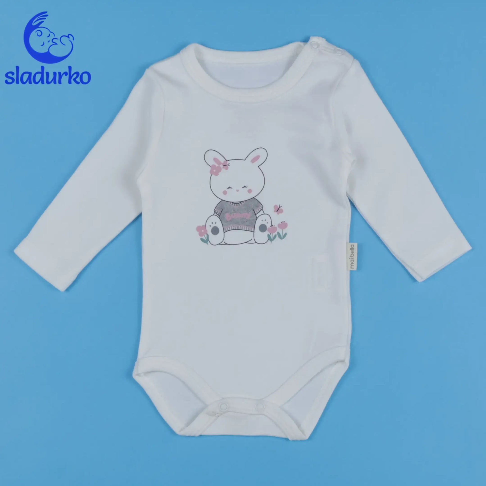 Стилен и удобен комплект за бебчета, изработен от 100% мек и дишащ памук, който осигурява комфорт през целия ден. Съчетава практичност и сладък дизайн с нежни цветове и весела щампа на зайче.