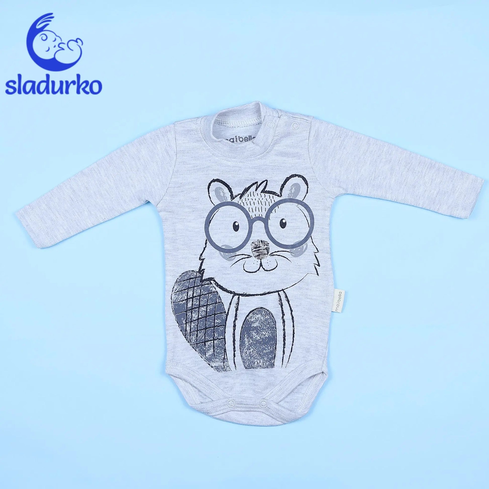 - Боди: Меко боди с дълъг ръкав, с щампа, която се съчетава с апликацията на суичъра.