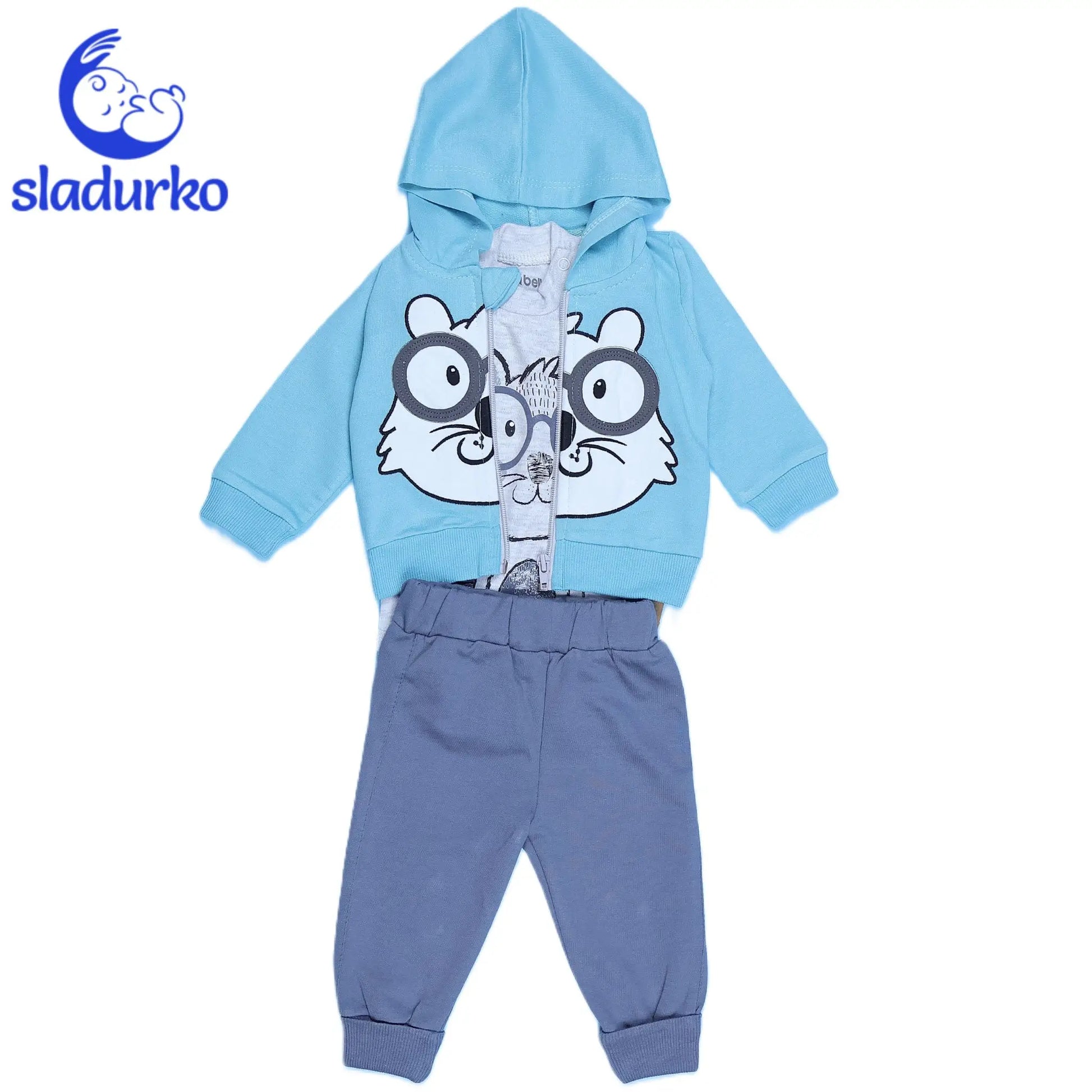 Този очарователен комплект е идеалният избор за вашето малко съкровище. Състои се от мек суичър с качулка, удобно боди и стилни панталонки, осигурявайки комфорт и стил през целия ден.