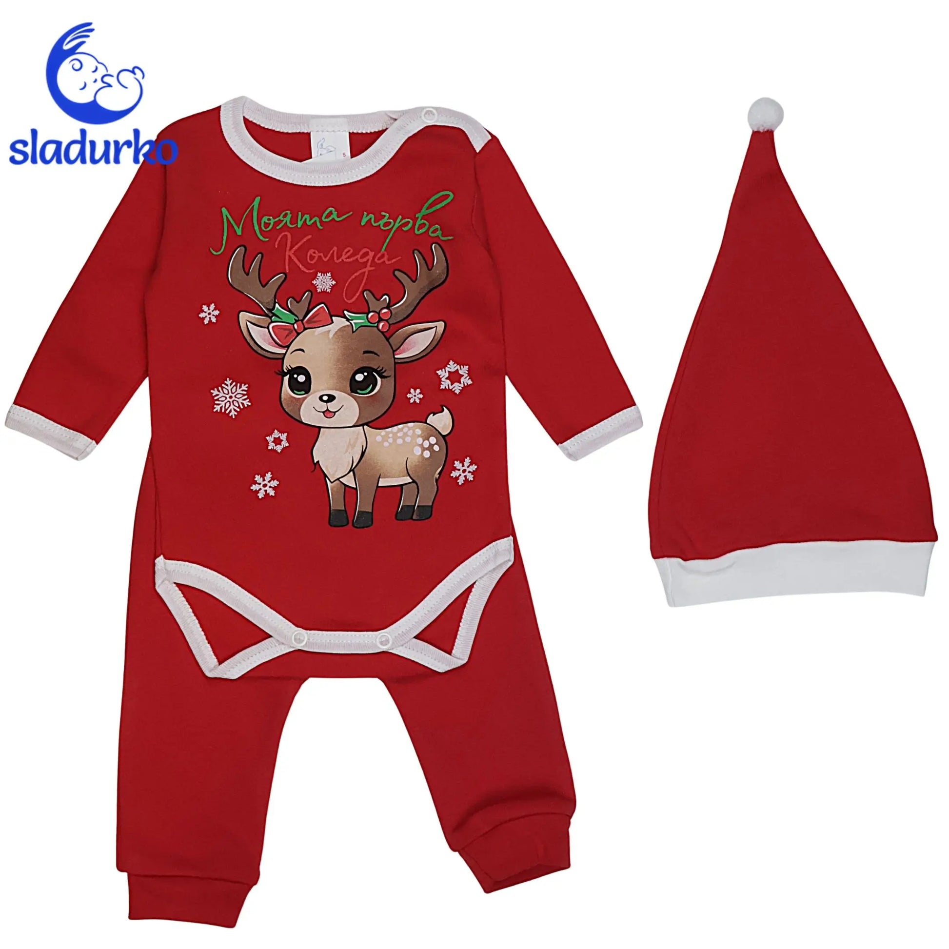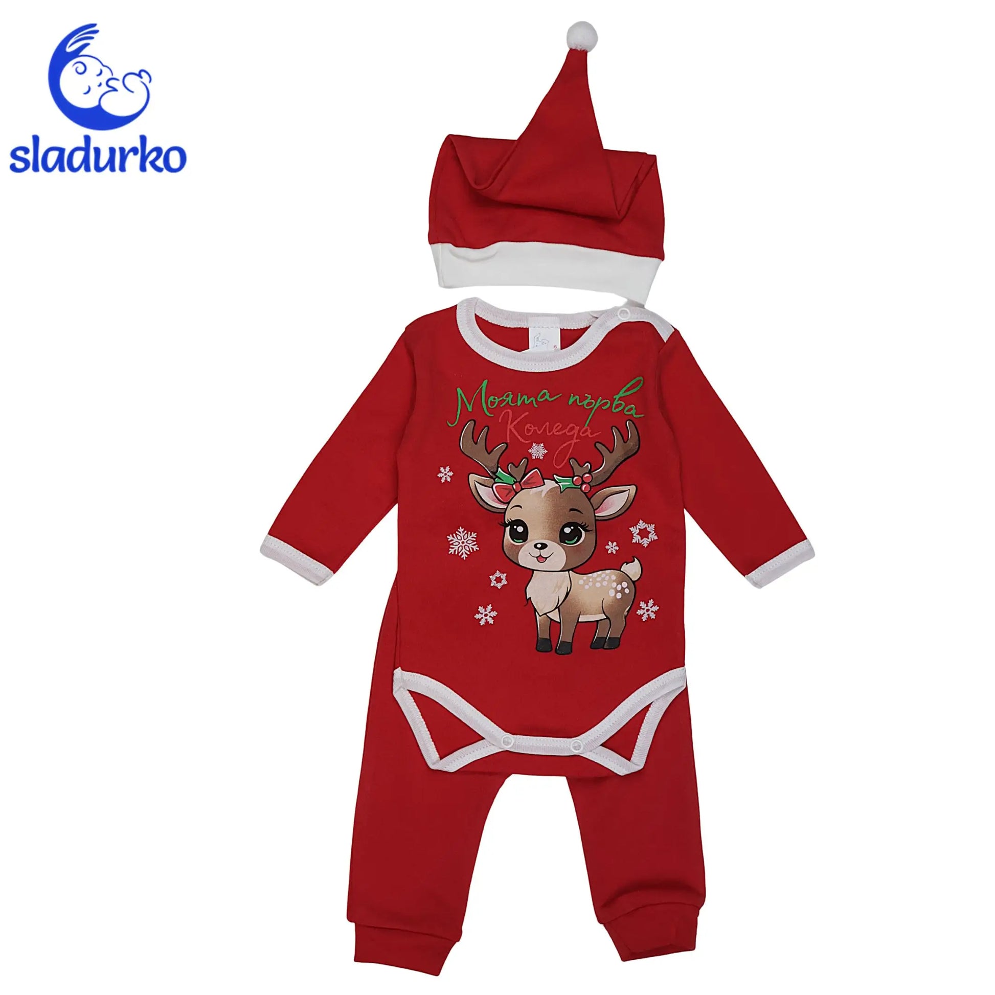 Комплект "Моята Първа Коледа" (3 части) - Боди, Панталон и Коледна Шапка