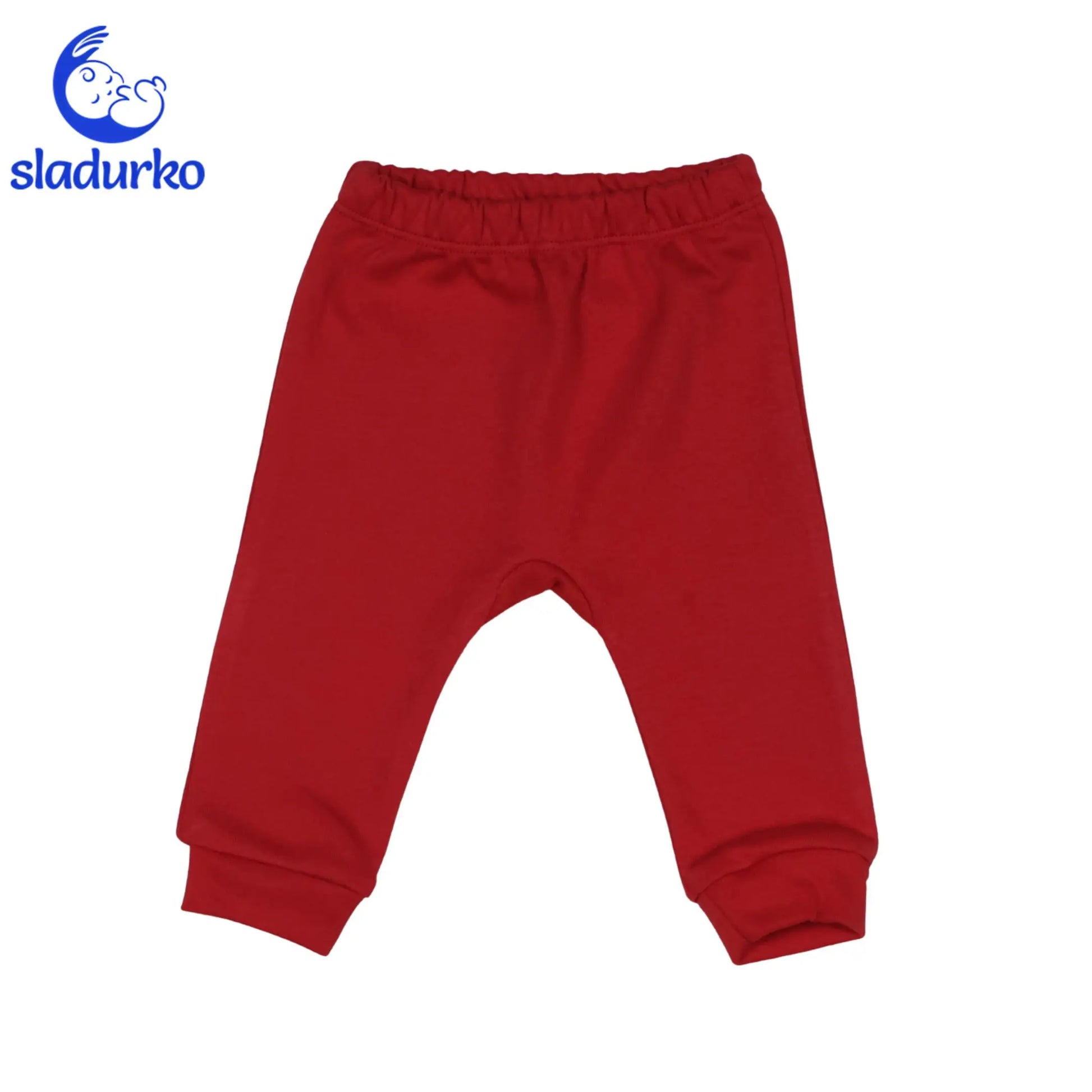 Панталон: Изчистен червен панталон с ластик на талията и крачолите за плътно и удобно прилягане.