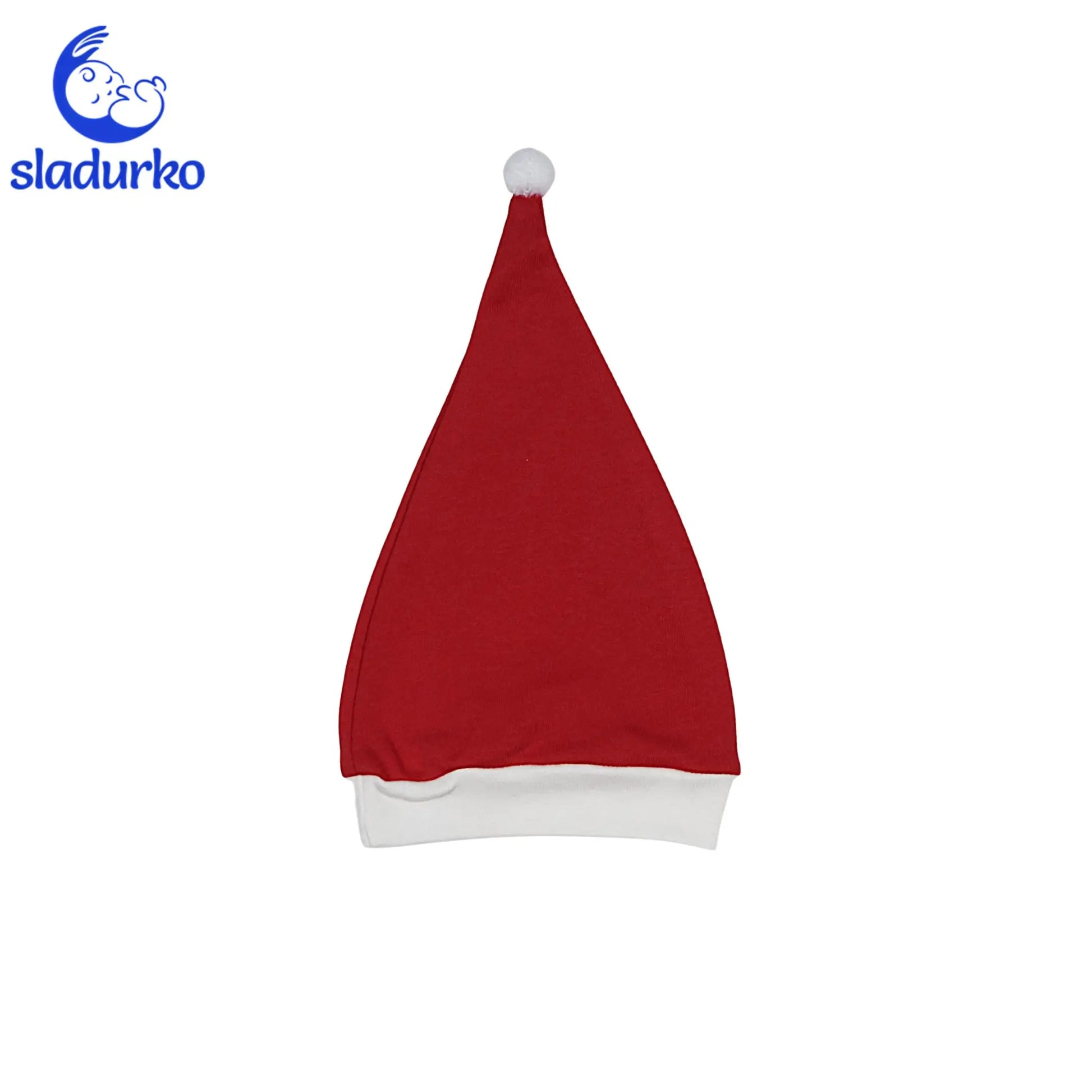 Шапка: Класическа червена коледна шапка с бял подгъв и помпон, завършваща празничния тоалет.