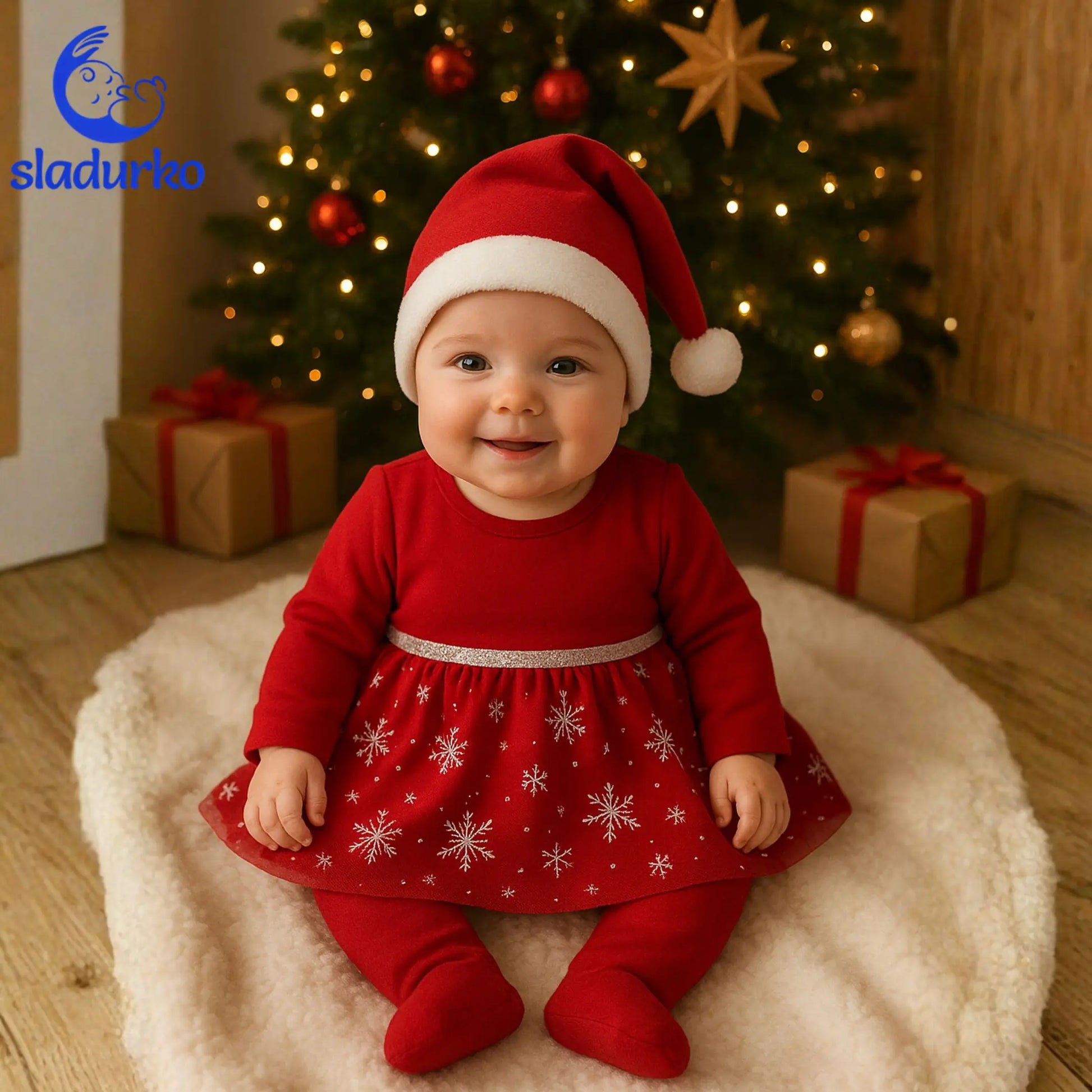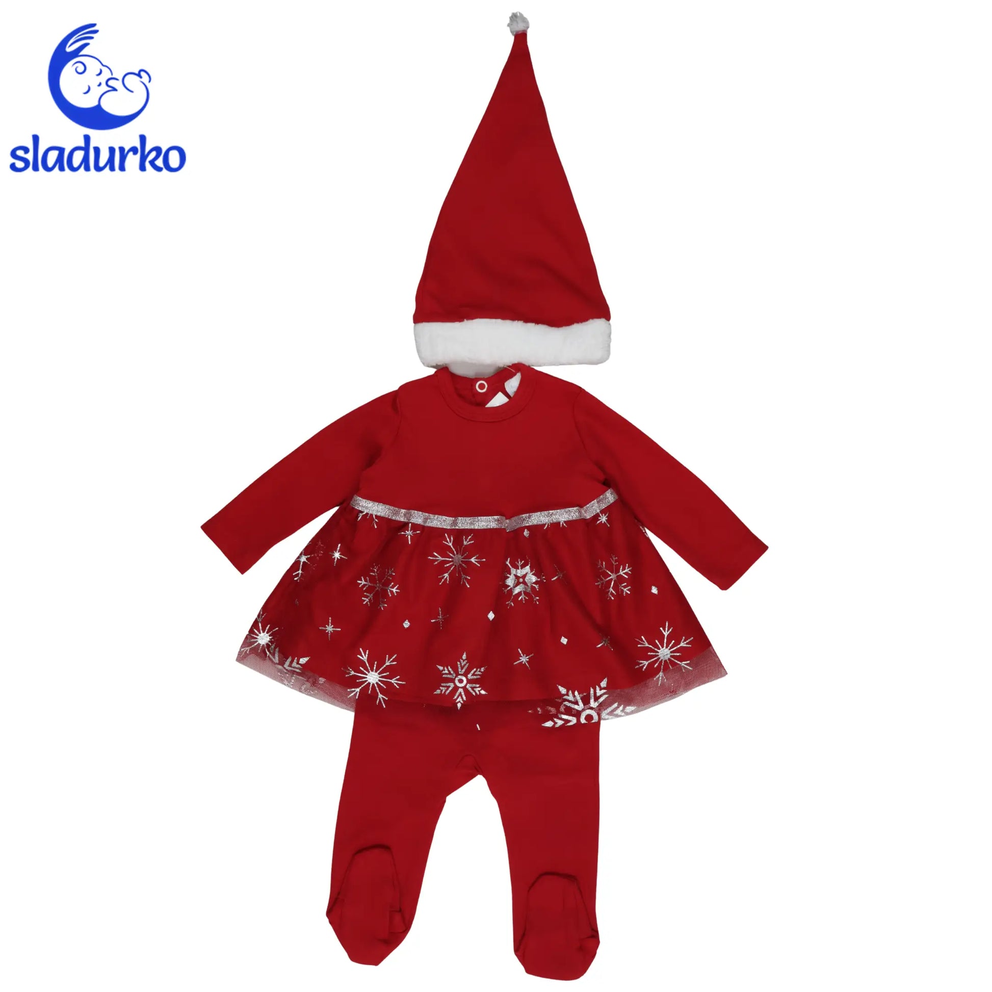 Бебешки Коледен Комплект 3 части: Рокля,Ританки и Шапка на Дядо Коледа