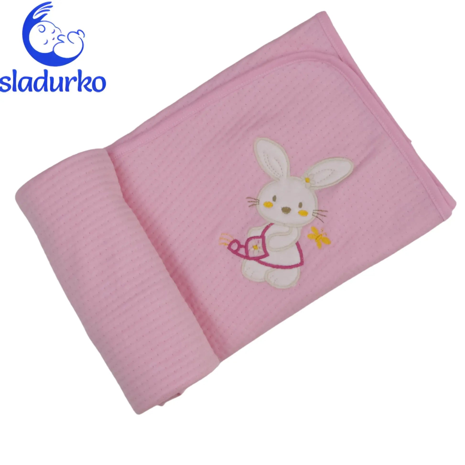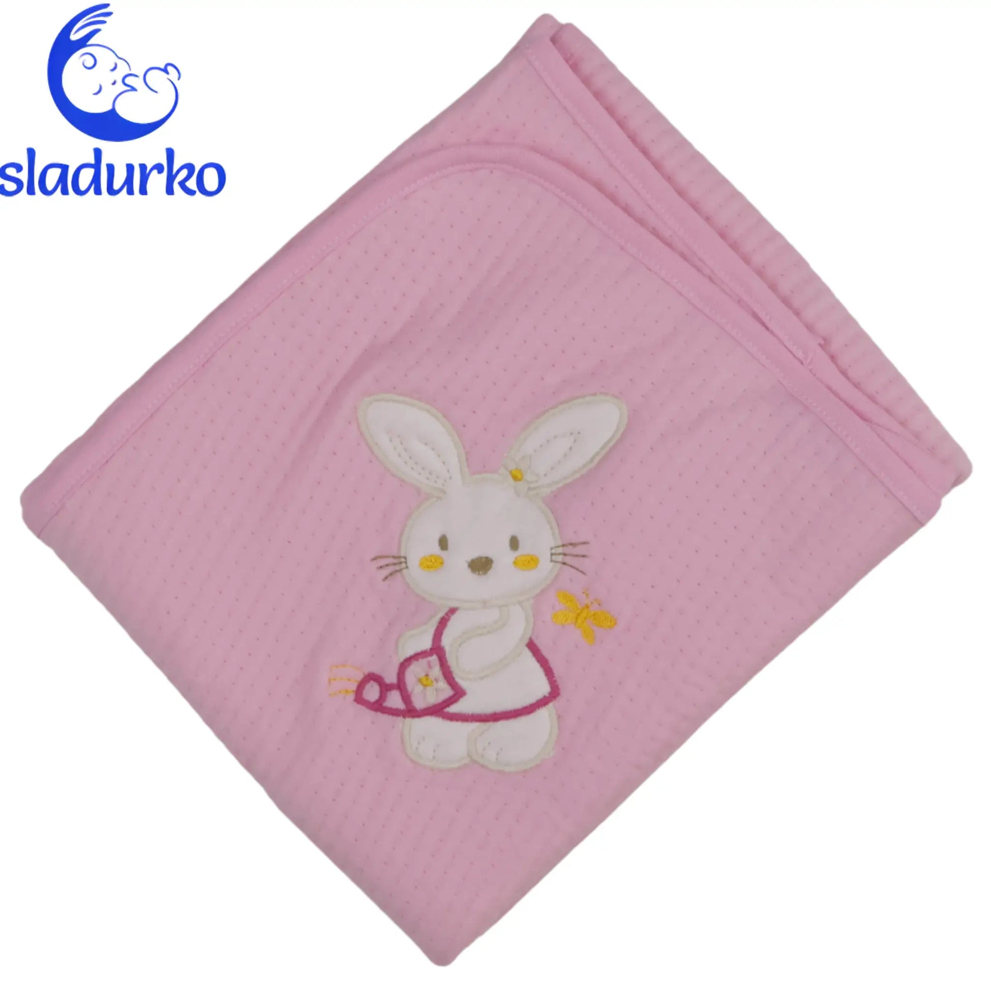 Сладък Дизайн: Пелената е украсена с очарователна апликация на животинче, която придава нежен и детски вид. Дизайнът е внимателно подбран, за да радва окото и да допълва всяка бебешка стая.