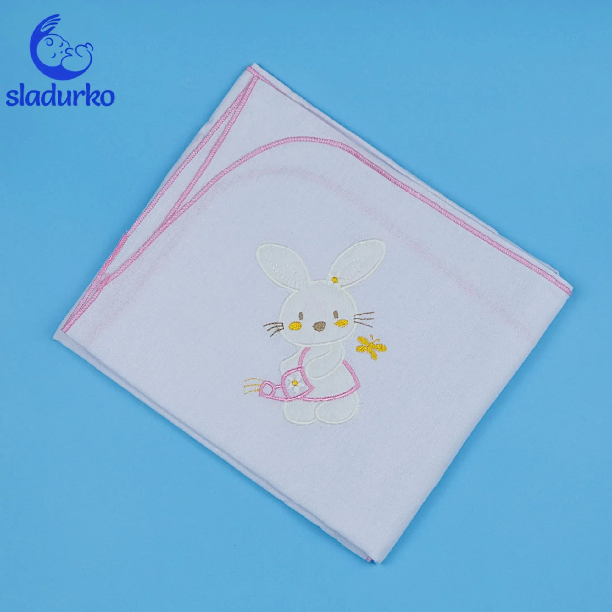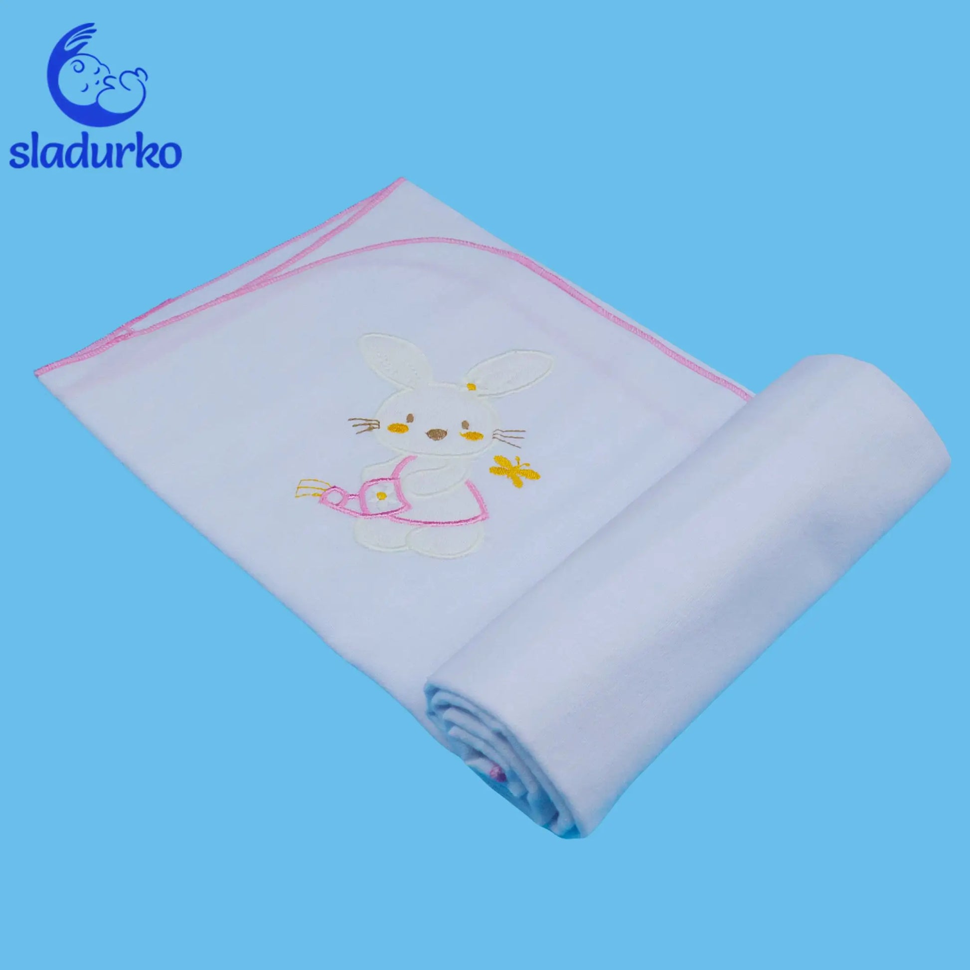 Бяла бархетна пелена изработена от мека и нежна памучна материя - 100% памук, която осигурява комфорт и безопасност при допир с чувствителната бебешка кожа.