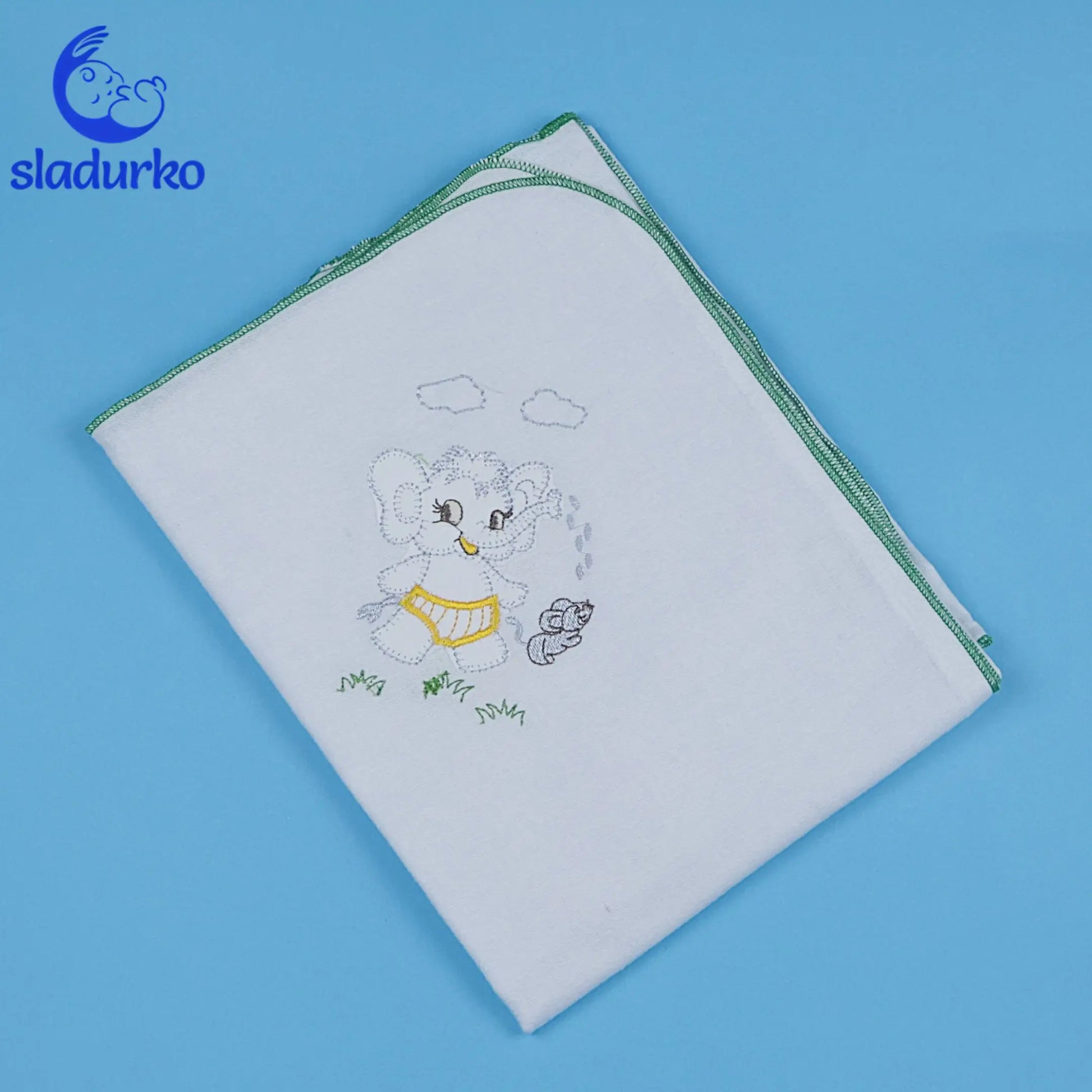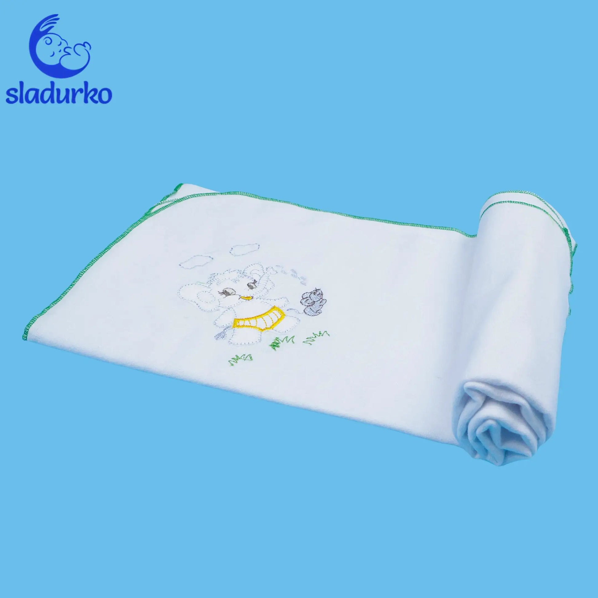 Бяла бархетна пелена изработена от мека и нежна памучна материя - 100% памук, която осигурява комфорт и безопасност при допир с чувствителната бебешка кожа.