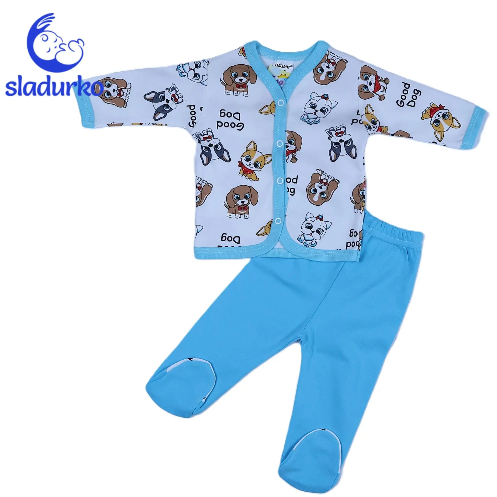 Бебешки комплект- горно със предно закопчаване и ританки с крачета