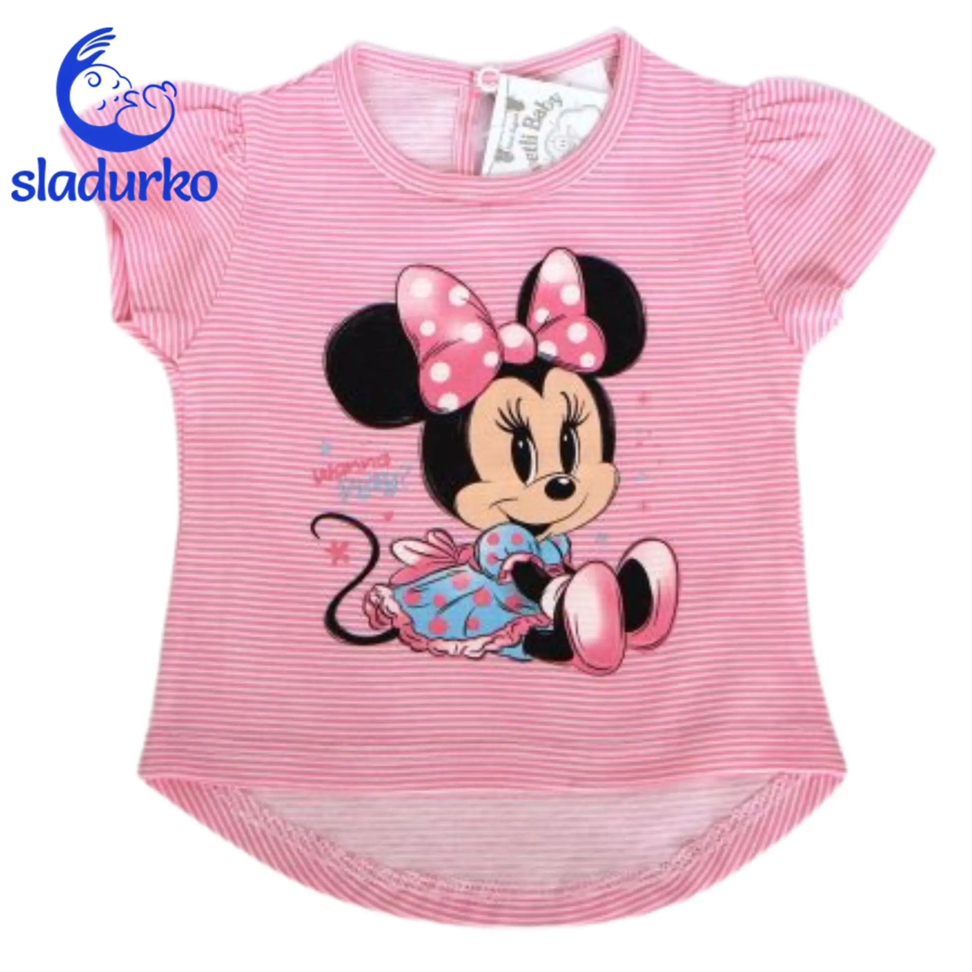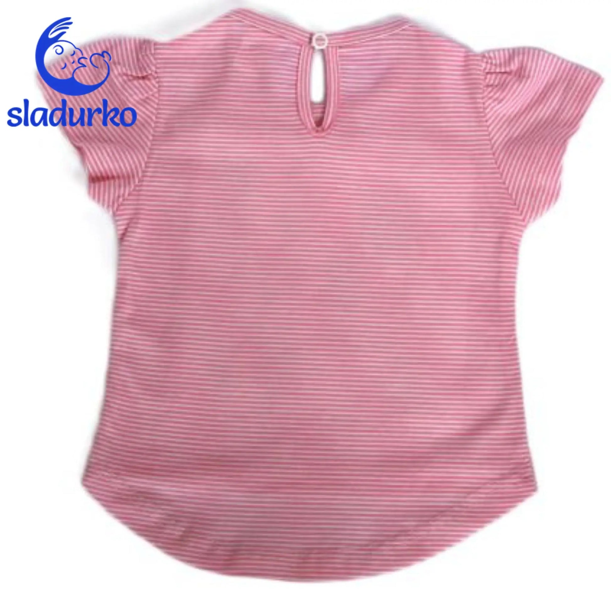 Тениска с къс ръкав за момиче розов цвят с принт . Изработена от 100% памук. Изработена от мек и дишащ памук, идеален за деликатната бебешка кожа.