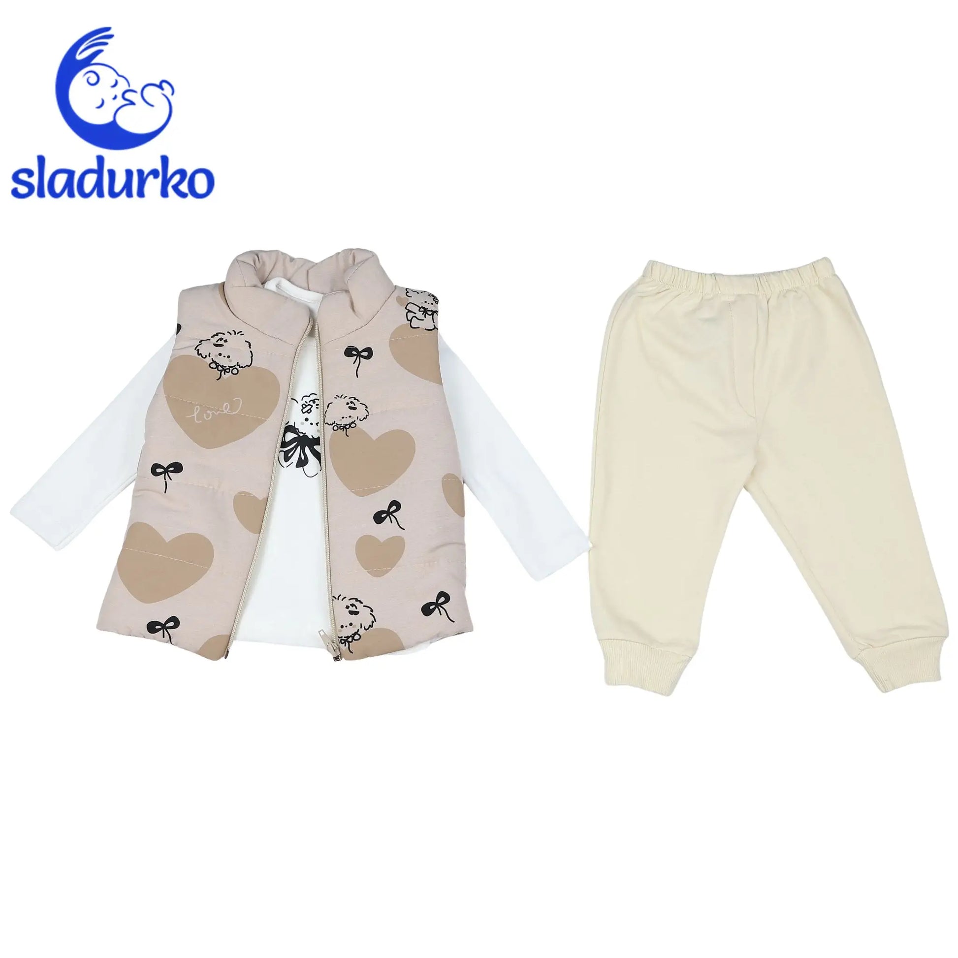 Представяме ви нашия сладък и стилен бебешки комплект, състоящ се от блузка, елече и панталонки. Този комплект е идеален за малките дами, които обичат да се чувстват комфортно и да изглеждат прекрасно. Подарете на вашето момиченце комфорт и стил с нашия бебешки комплект. Изберете дрехи, които ще го направят щастливо и удобно през целия ден. Разгледайте нашите предложения и поръчайте сега от нашия онлайн магазин.