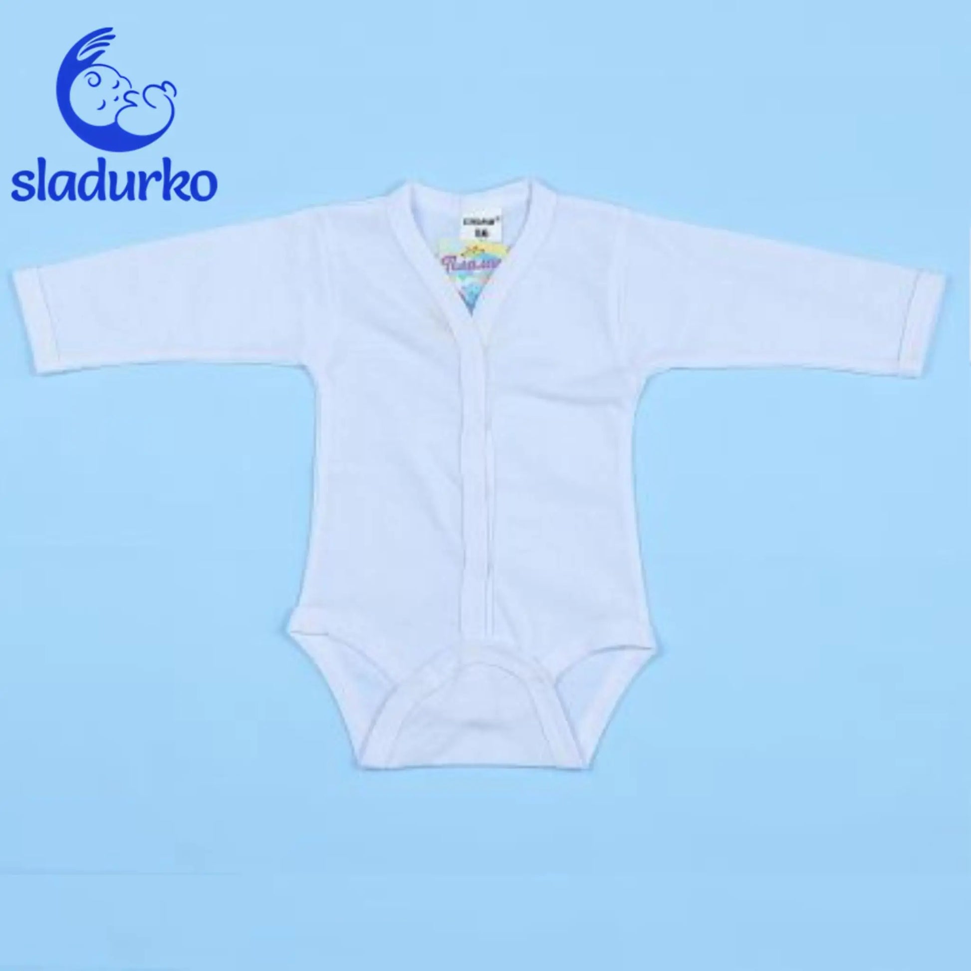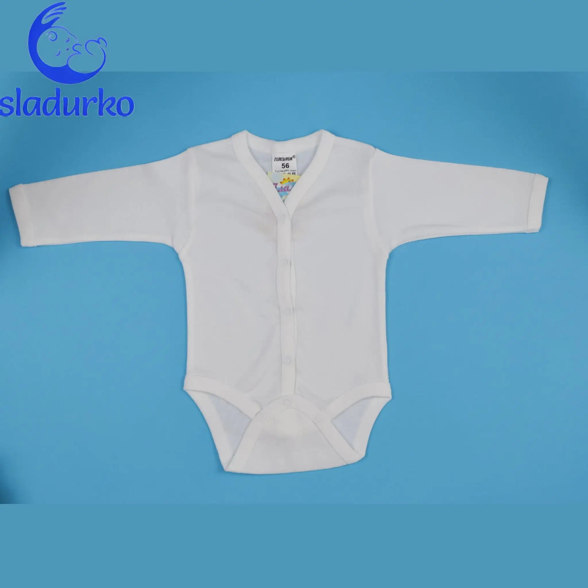 Бяло боди с дълъг ръкав и закопчаване отпред