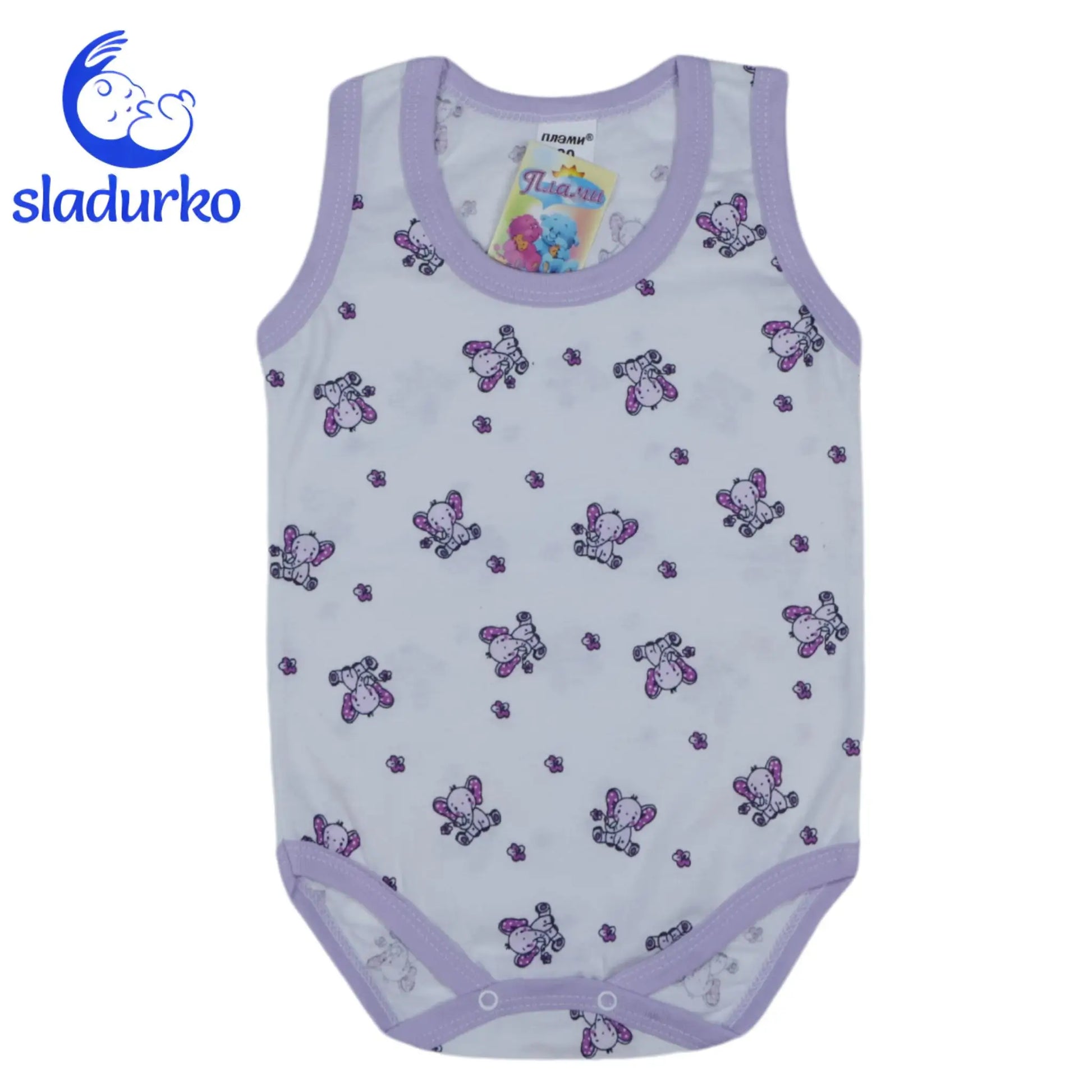Бебешко боди потник бял слончета