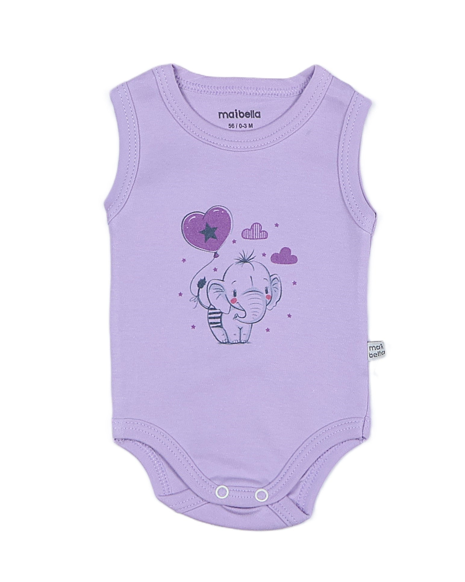 Размер от 56 до 74. Потник боди със закопчаване между краката с тик так копчета. 100% памук. Произведено от световния производител на бебешки дрехи Maibella.