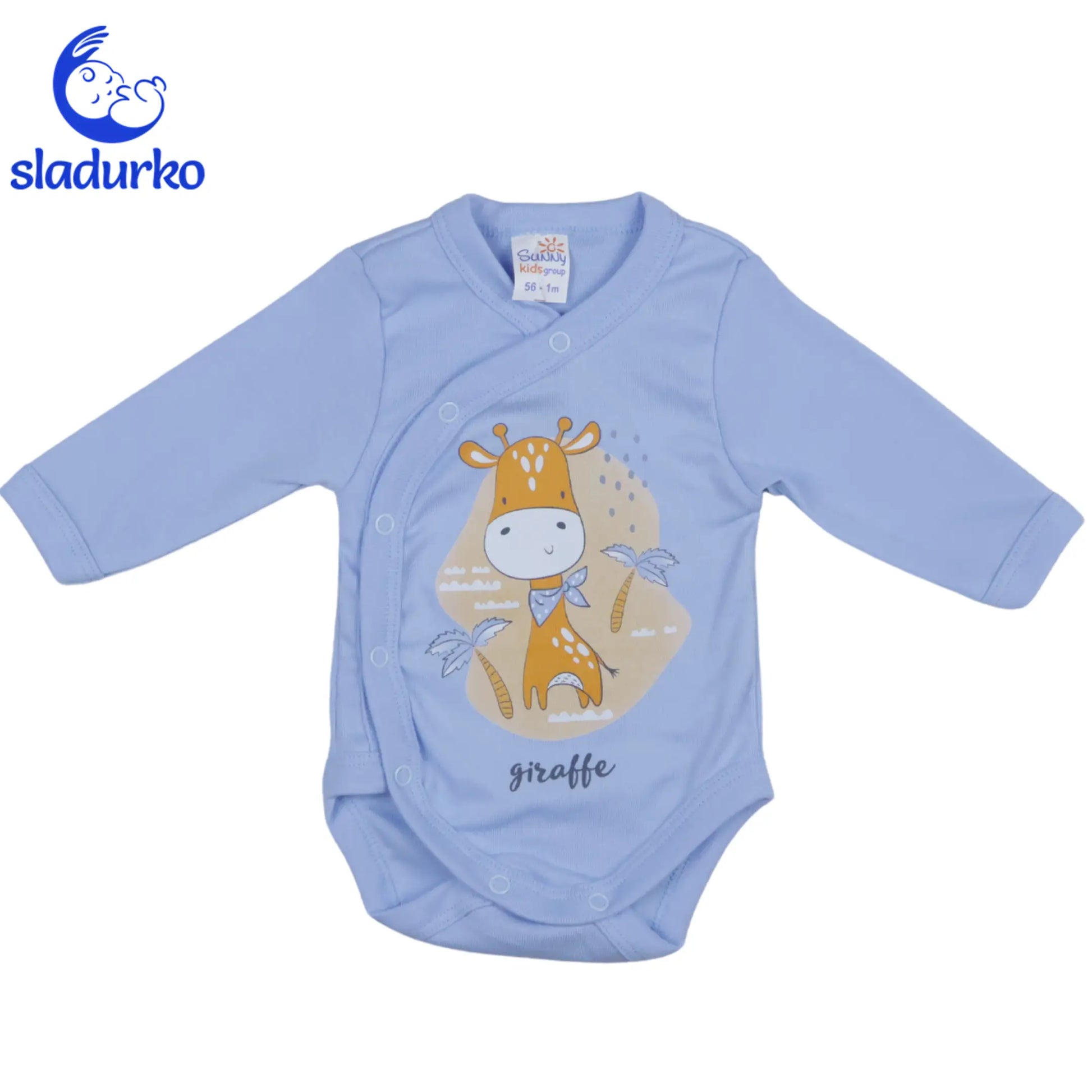 Бебешко боди с дълъг ръкав – 100% памук, със странично закопчаване