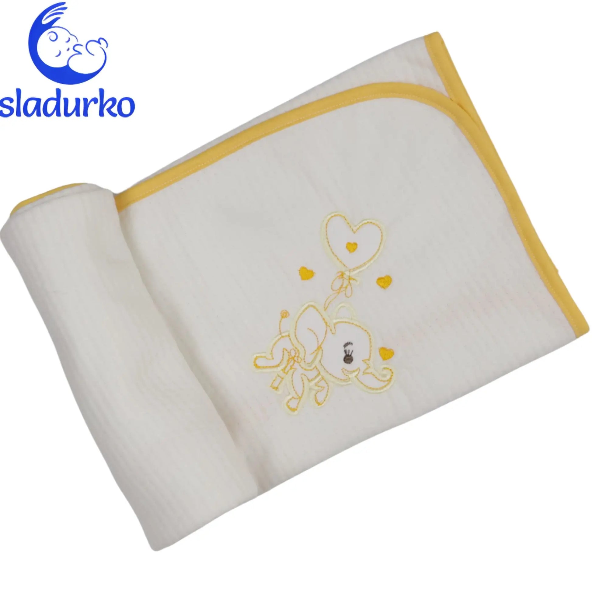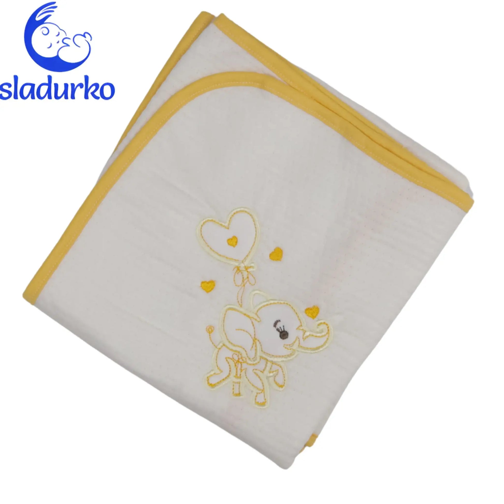 Сладък Дизайн: Пелената е украсена с очарователна апликация на животинче, която придава нежен и детски вид. Дизайнът е внимателно подбран, за да радва окото и да допълва всяка бебешка стая.