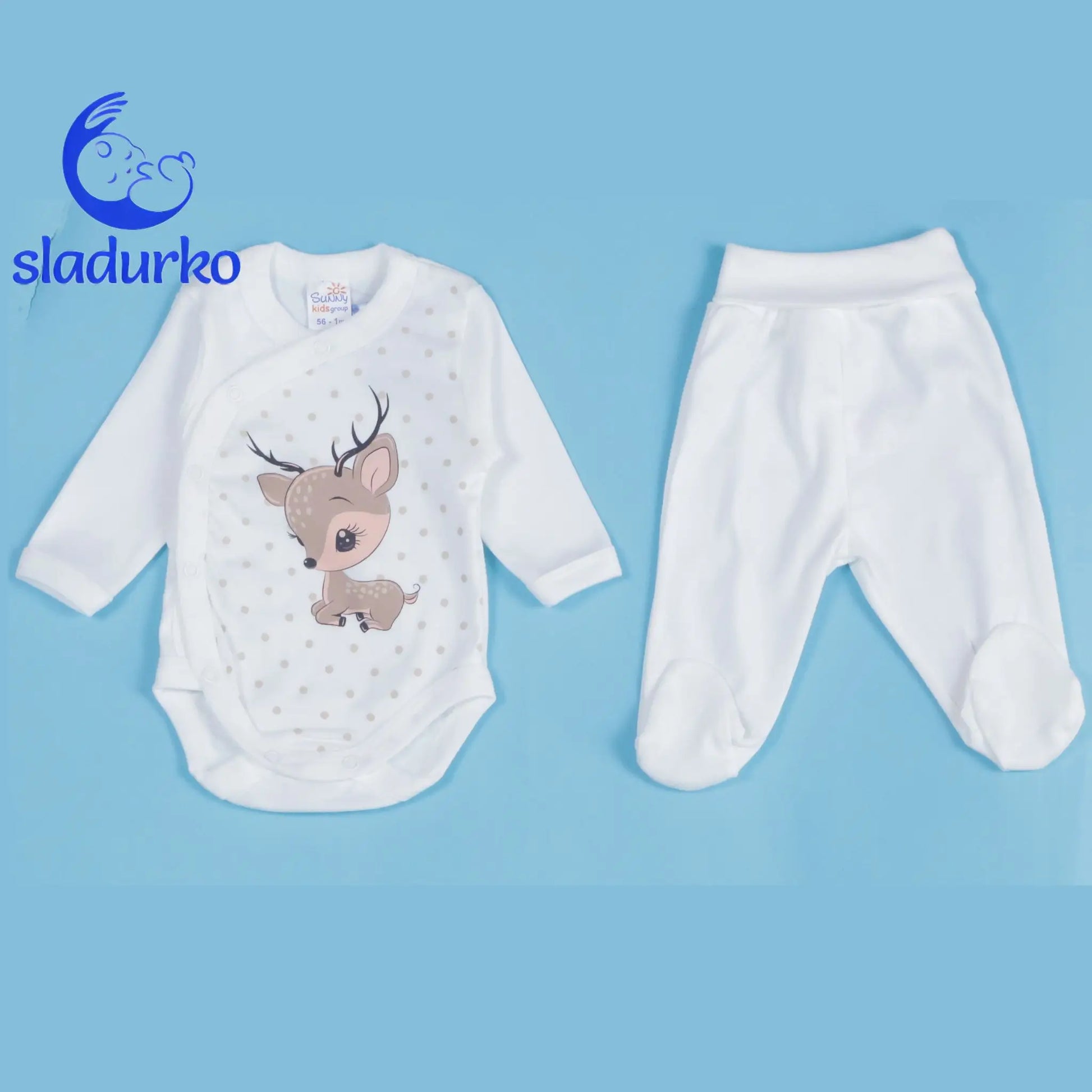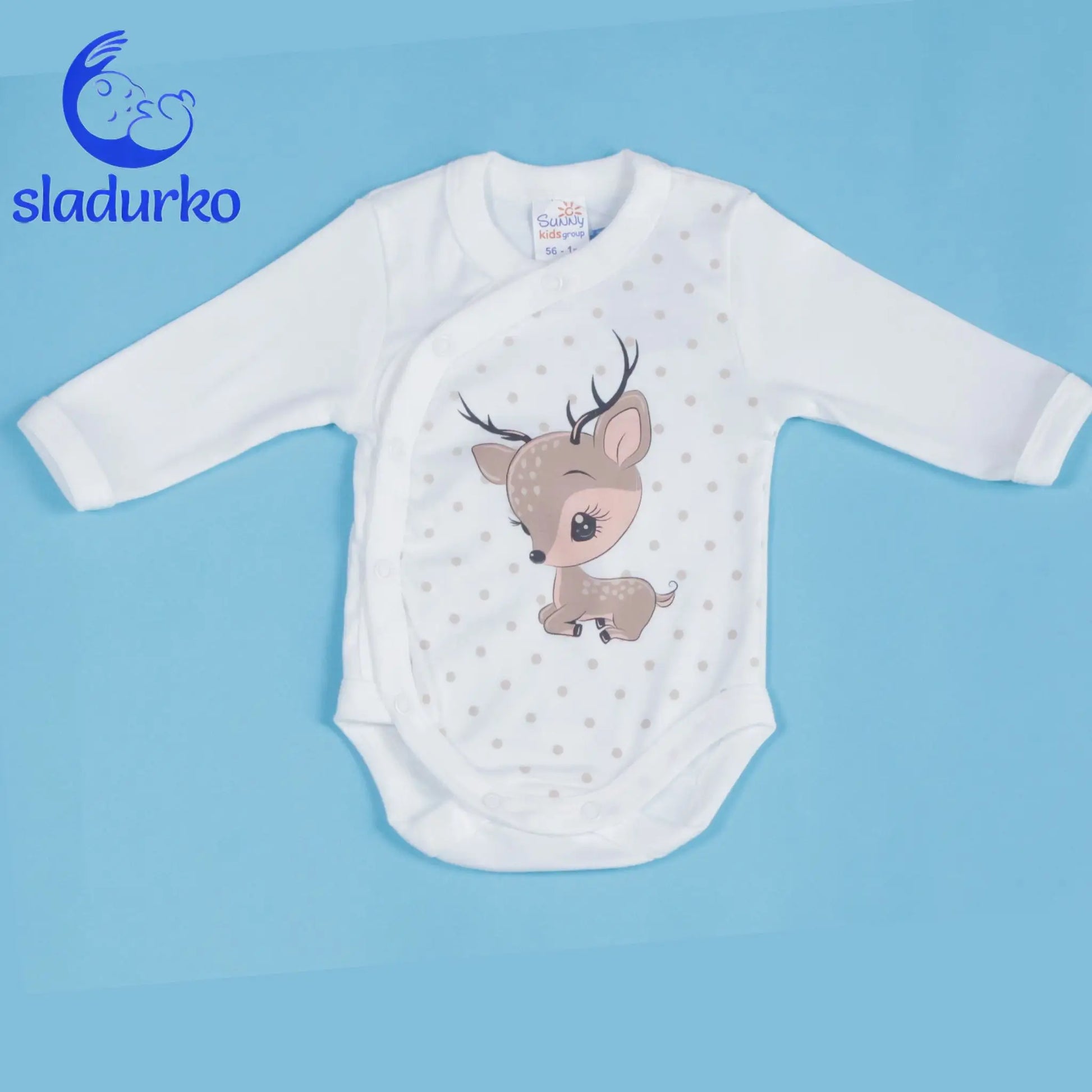 - Боди с дълъг ръкав: Удобно и практично за ежедневно носене, с нежно еленче, отпечатано отпред.