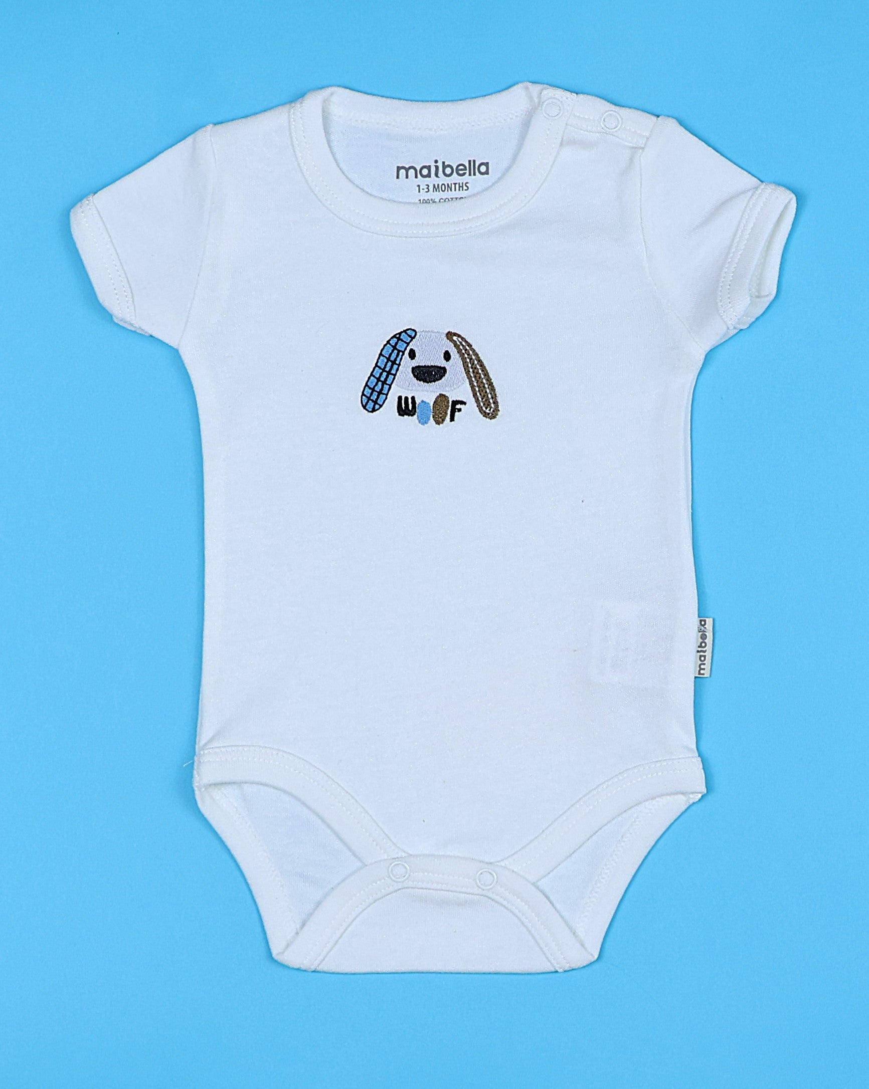 Размер от 1-3 до 9-12 месеца. Боди със закопчаване между краката и на рамото с тик так копчета. 100% памук. Произведено от световния производител на бебешки дрехи Maibella.