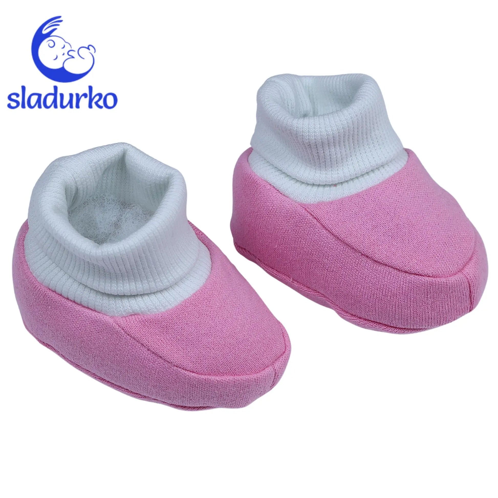 Памучни терлици с двоен ластик на глезена. 100% памук. Произведено в България. Размер 0-6 месеца. 9см. дължина на стелка.