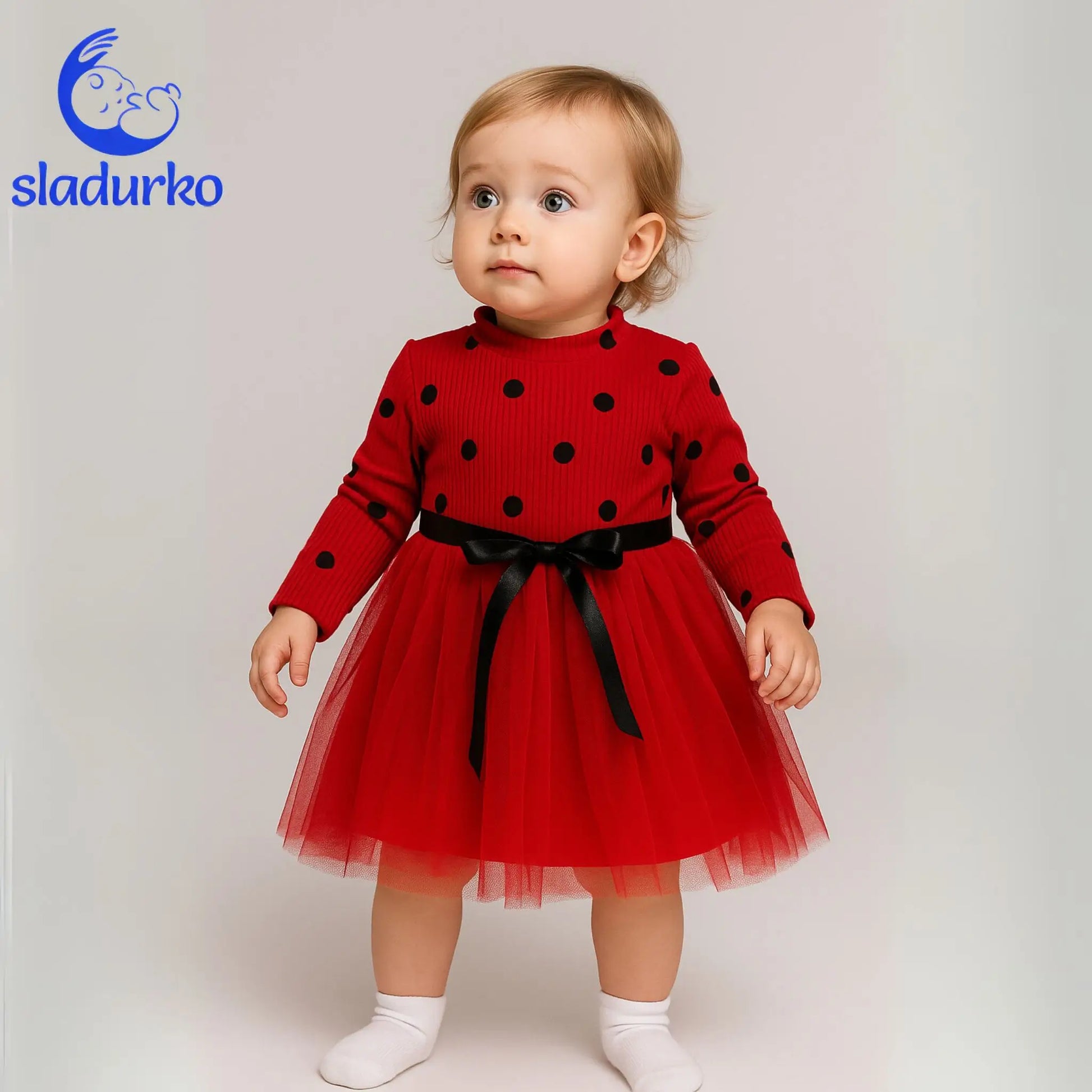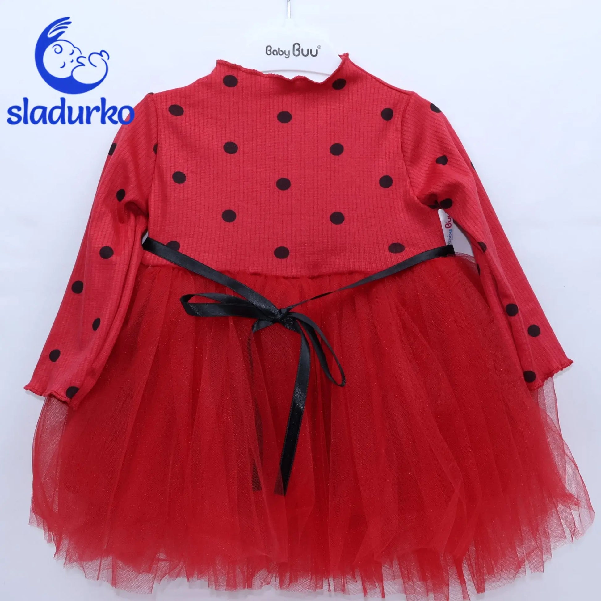 Подходяща за кръщене и официални празници. Дизайн: Горната част на рокличката е украсена с малки точки, които добавят закачлив и модерен акцент. Долната част е изработена от нежен тюл, който създава красив обем и придава на рокличката приказен вид. Материя: Горната част е направена от мека и удобна материя, осигуряваща комфорт през целия ден. Тюлената долна част е лека и ефирна, позволяваща свобода на движение и създаваща ефект на принцеса. Тази бебешка рокличка с тюлена долна част и горна част на точки е идеалният избор за специални моменти. Независимо дали е за празник, фотосесия или просто за един незабравим ден, вашето момиченце ще изглежда и ще се чувства като истинска принцеса в тази красива рокличка.