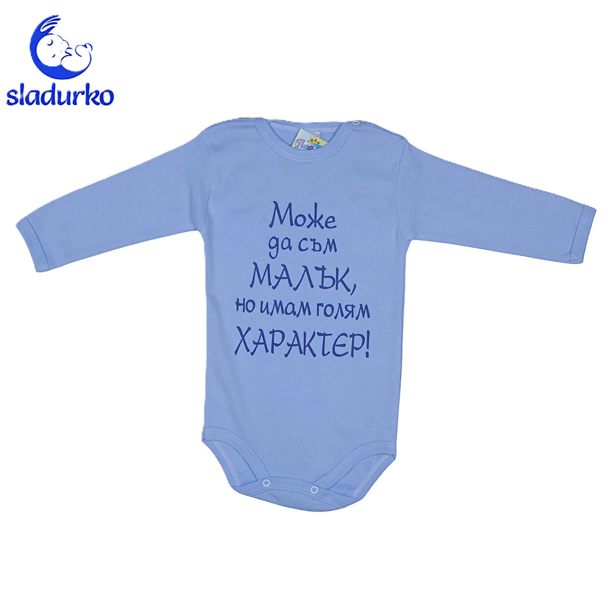 - Забавен надпис:"Може да съм малък , но имам голям характер" ще предизвика усмивки и ще покаже колко е специално вашето бебе.