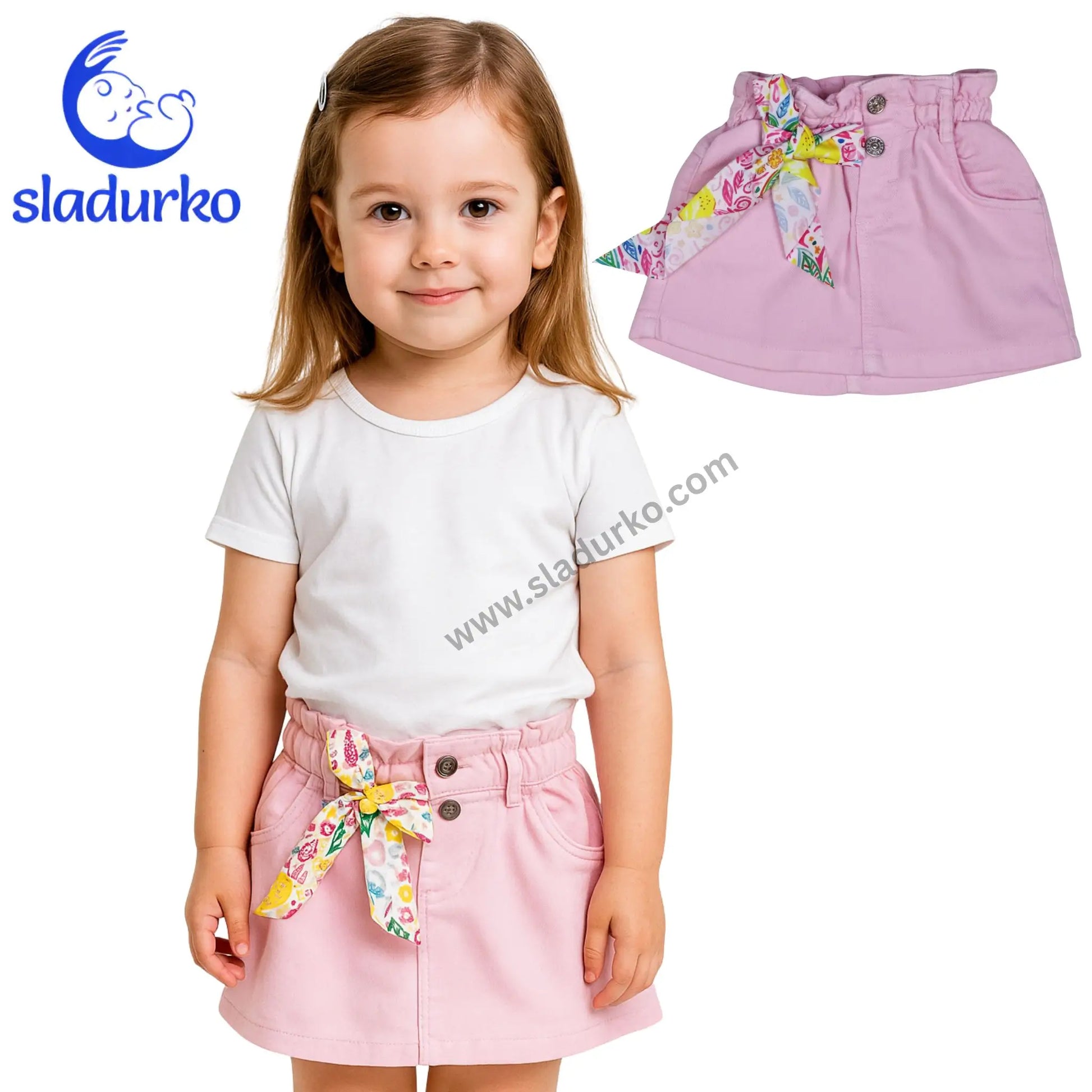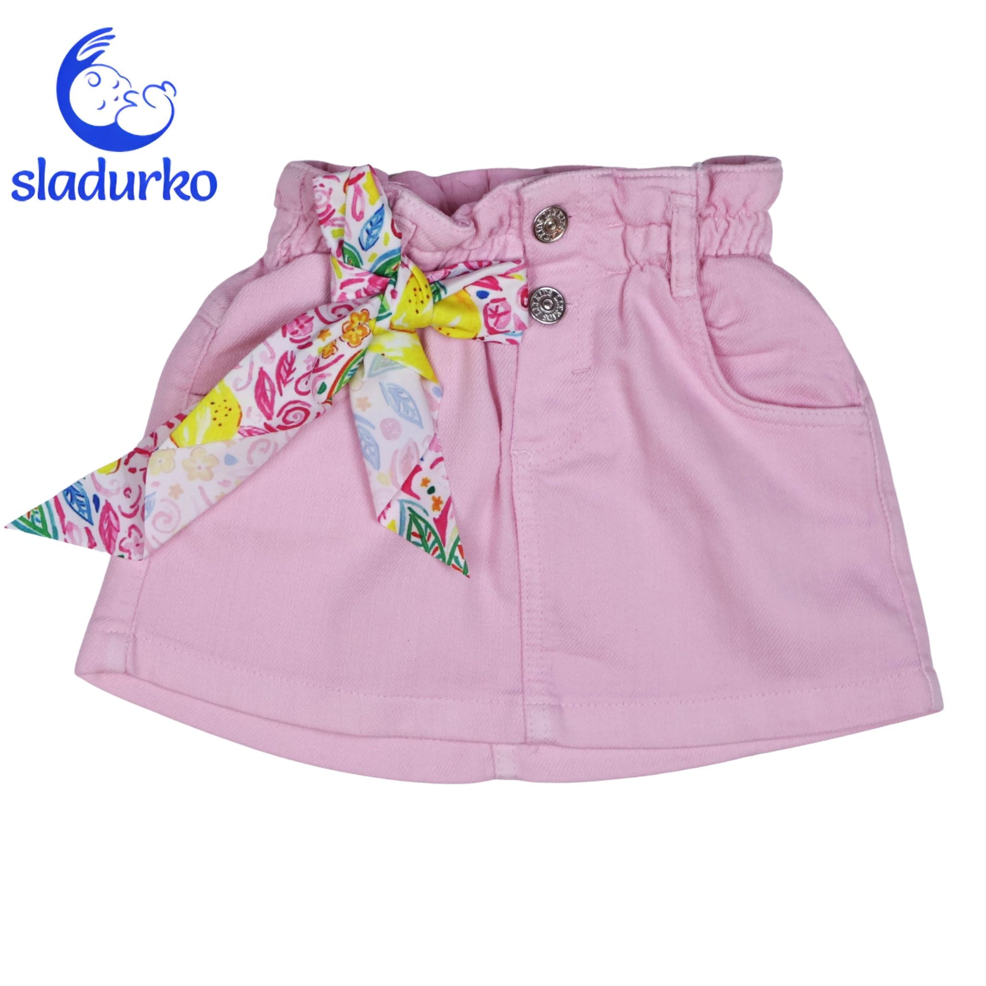 Сладка Розова Дънкова Поличка с Панделка – Закачлив Стил за Вашата Малка Дама!