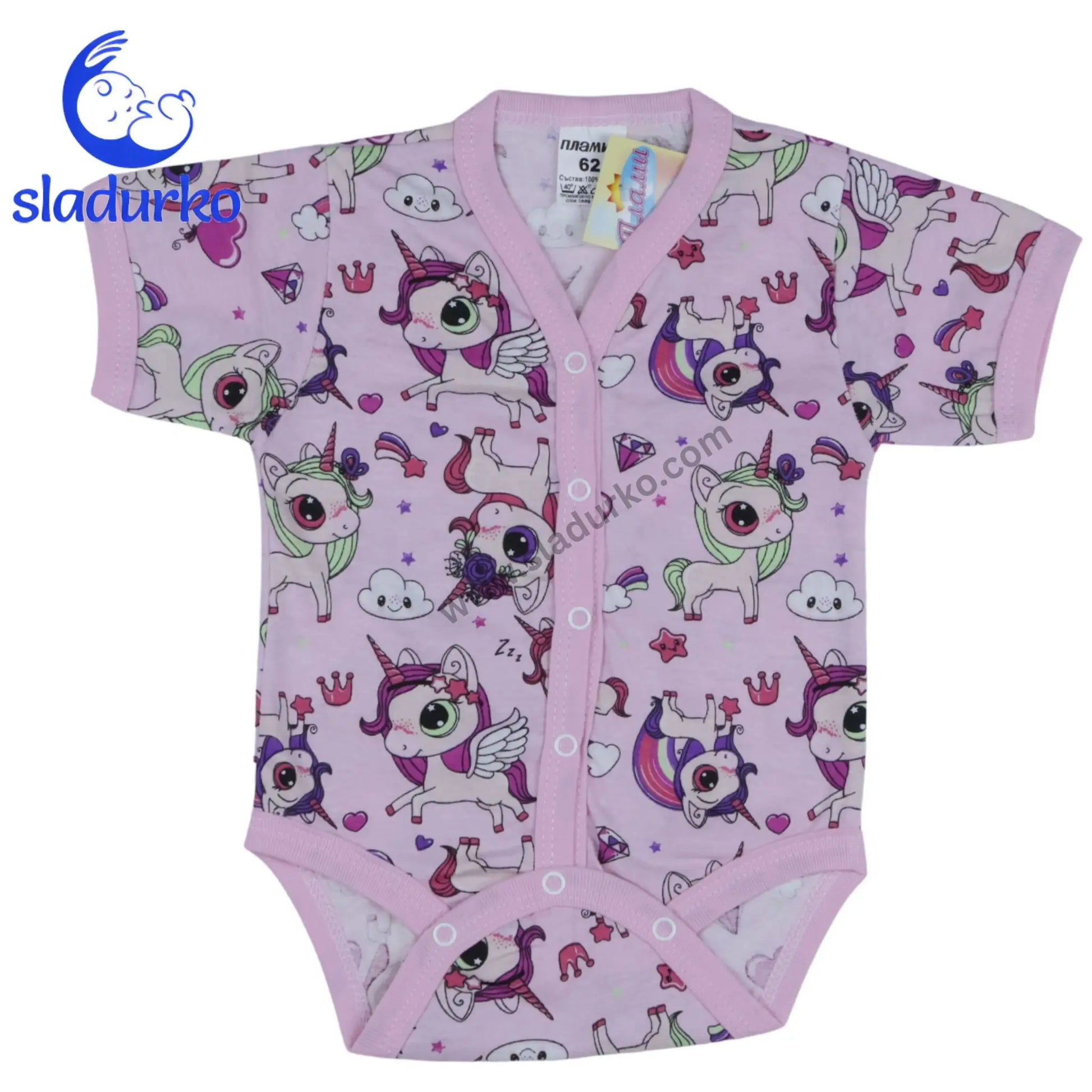Бебешко боди с къс ръкав “Малки еднорози” – розово