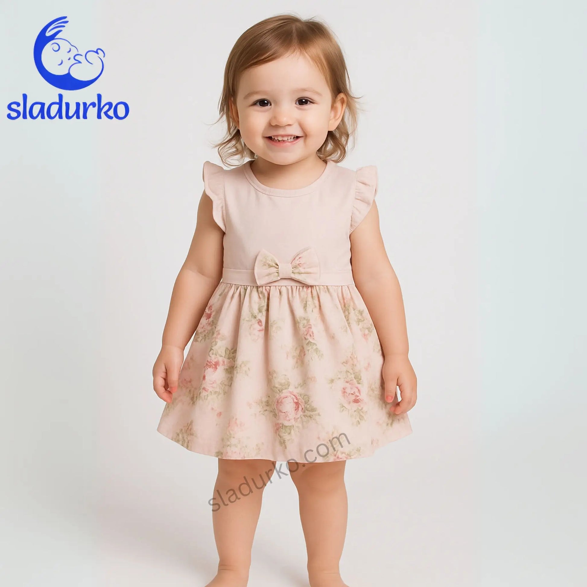 - Детайл на талията: На талията е разположен красив 3D платненa панделка с флорален десен, която е координирана с полата и придава изключително сладък и завършен вид. Талията е леко еластична, за да осигури комфорт.