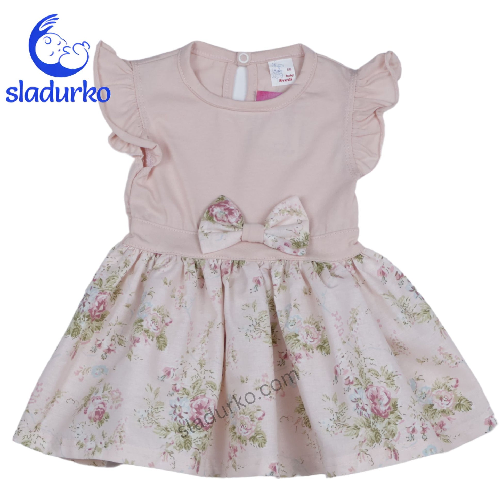 - Дизайн: Роклята се отличава с нежен и изискан дизайн в комбинация от едноцветен розов топ и пола с флорален принт.