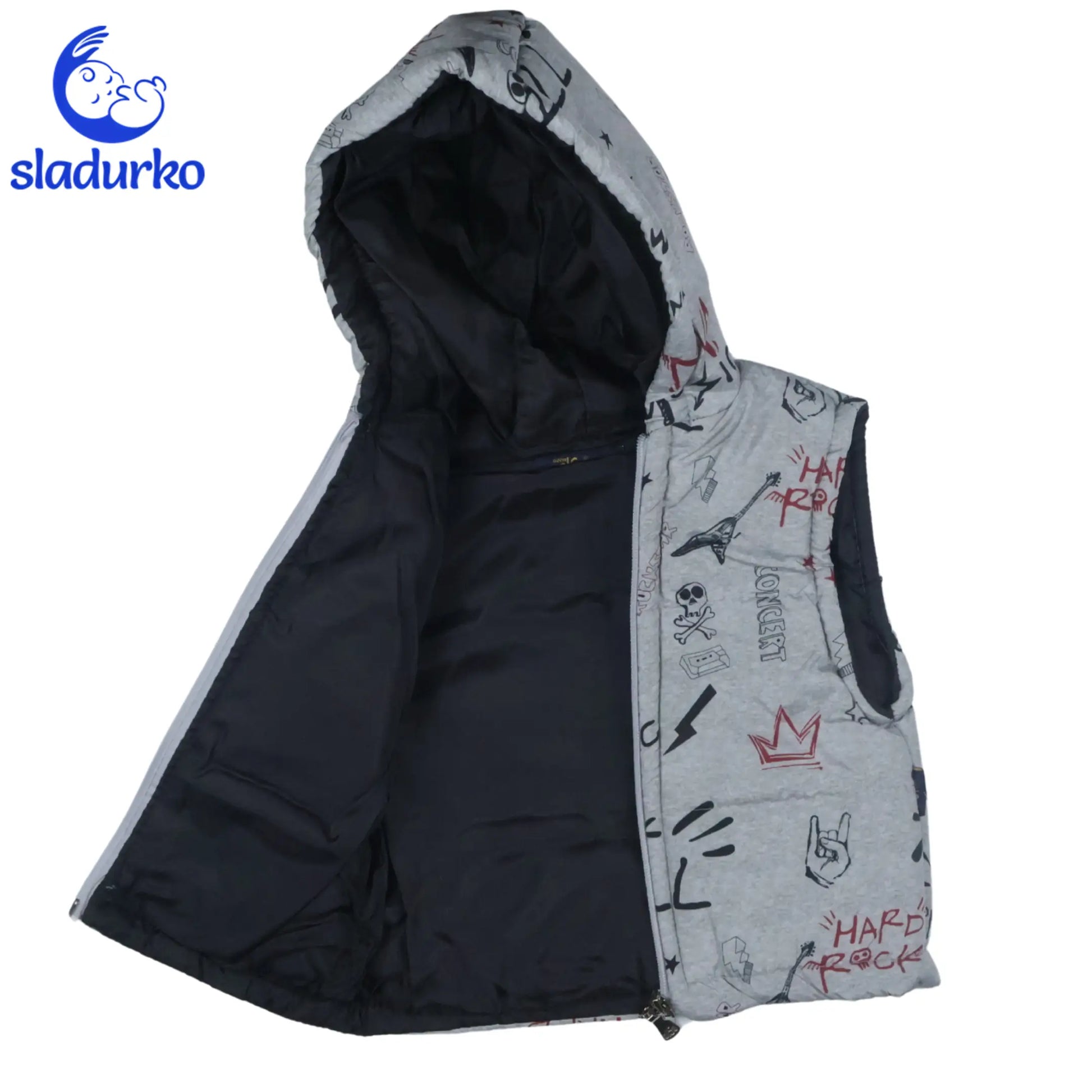 Комфорт и Свобода: Изработено от шушляк с лек пълнеж, елечето осигурява топлина за тялото, докато ръкавите са свободни за неограничено движение и игра.