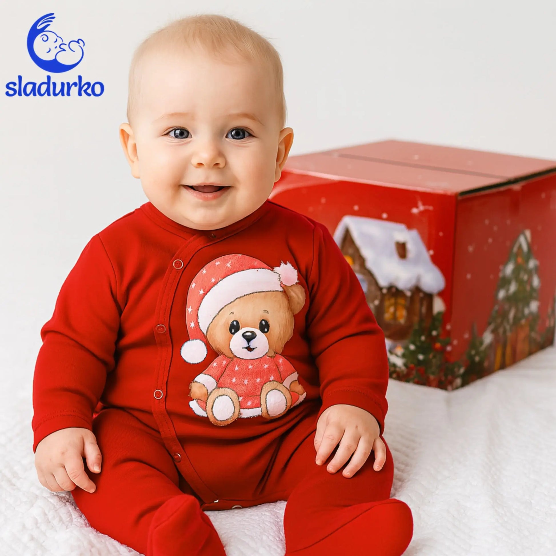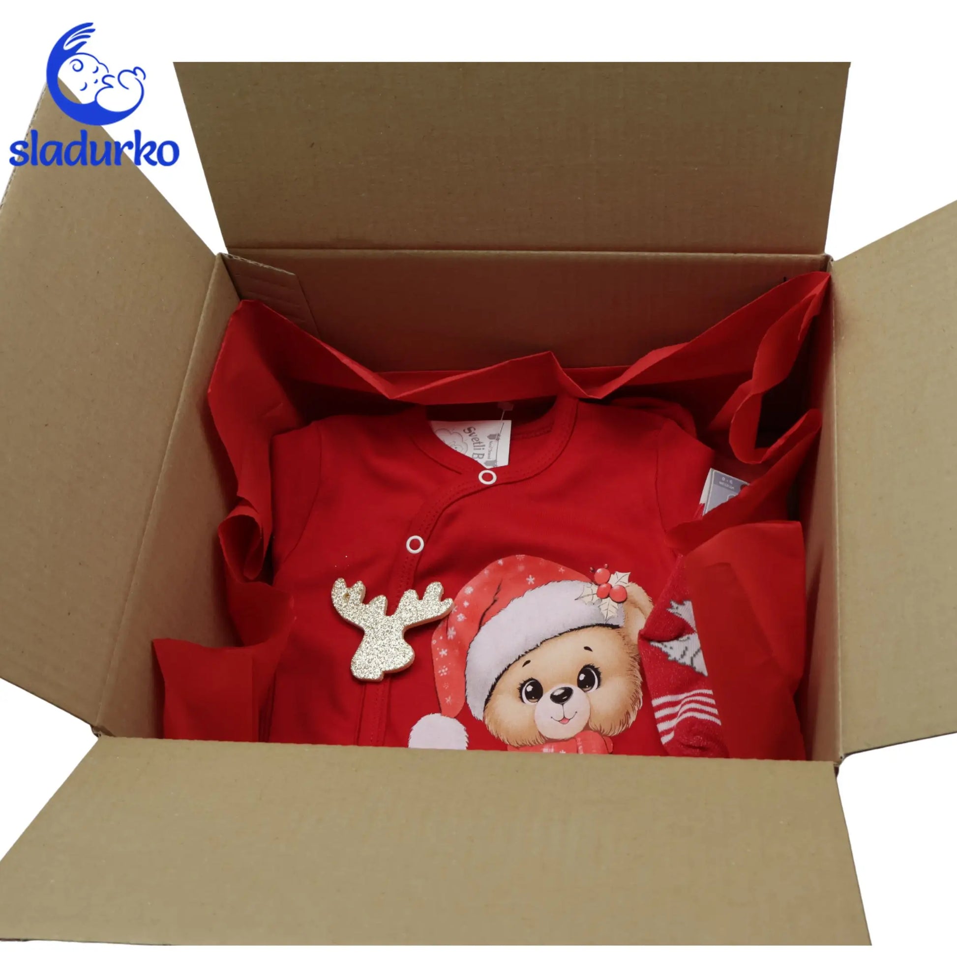 Подарете топлина, уют и празнично настроение с този прекрасен коледен комплект, идеален за първите зимни празници на вашето бебе! Всичко е грижливо опаковано в елегантна коледна кутия, готова за поднасяне.