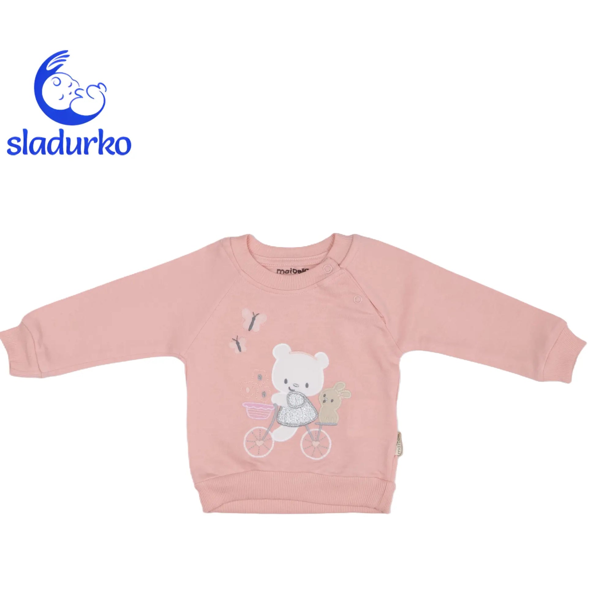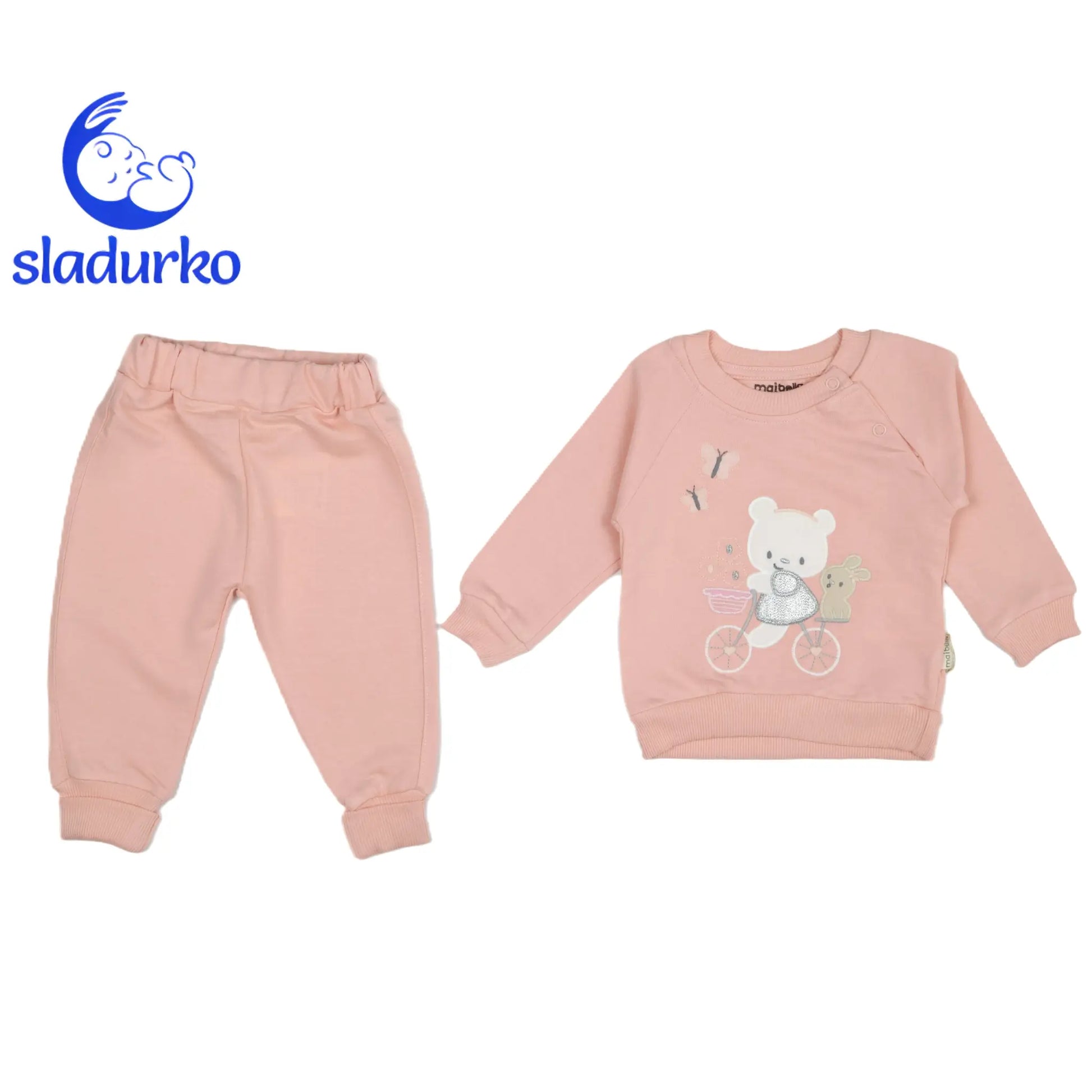 Комплект от две части за момиче с апликация Мече с колело -праскова