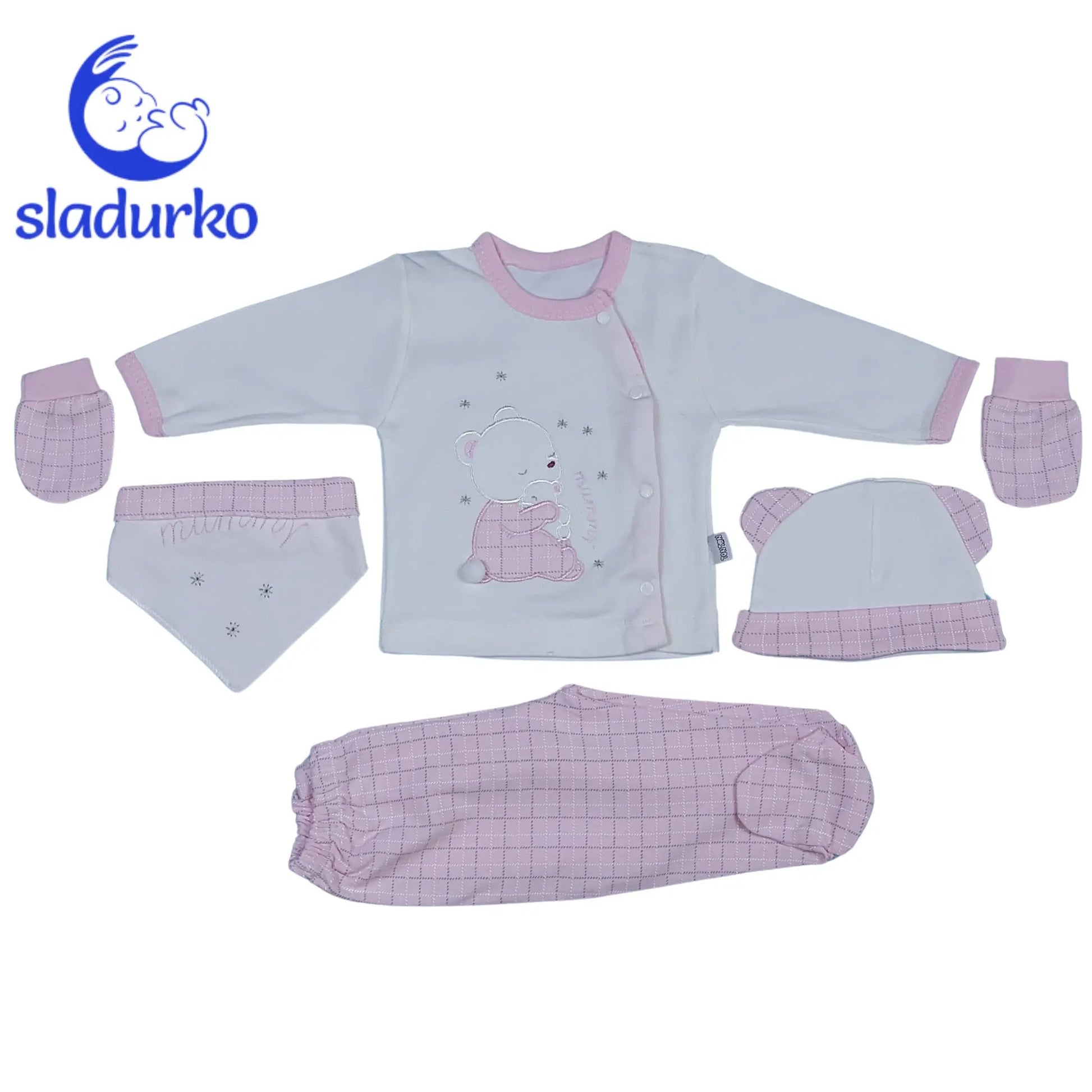 Размер 0-3 месеца. 100% памук. Комплект от 5 части в кутия.