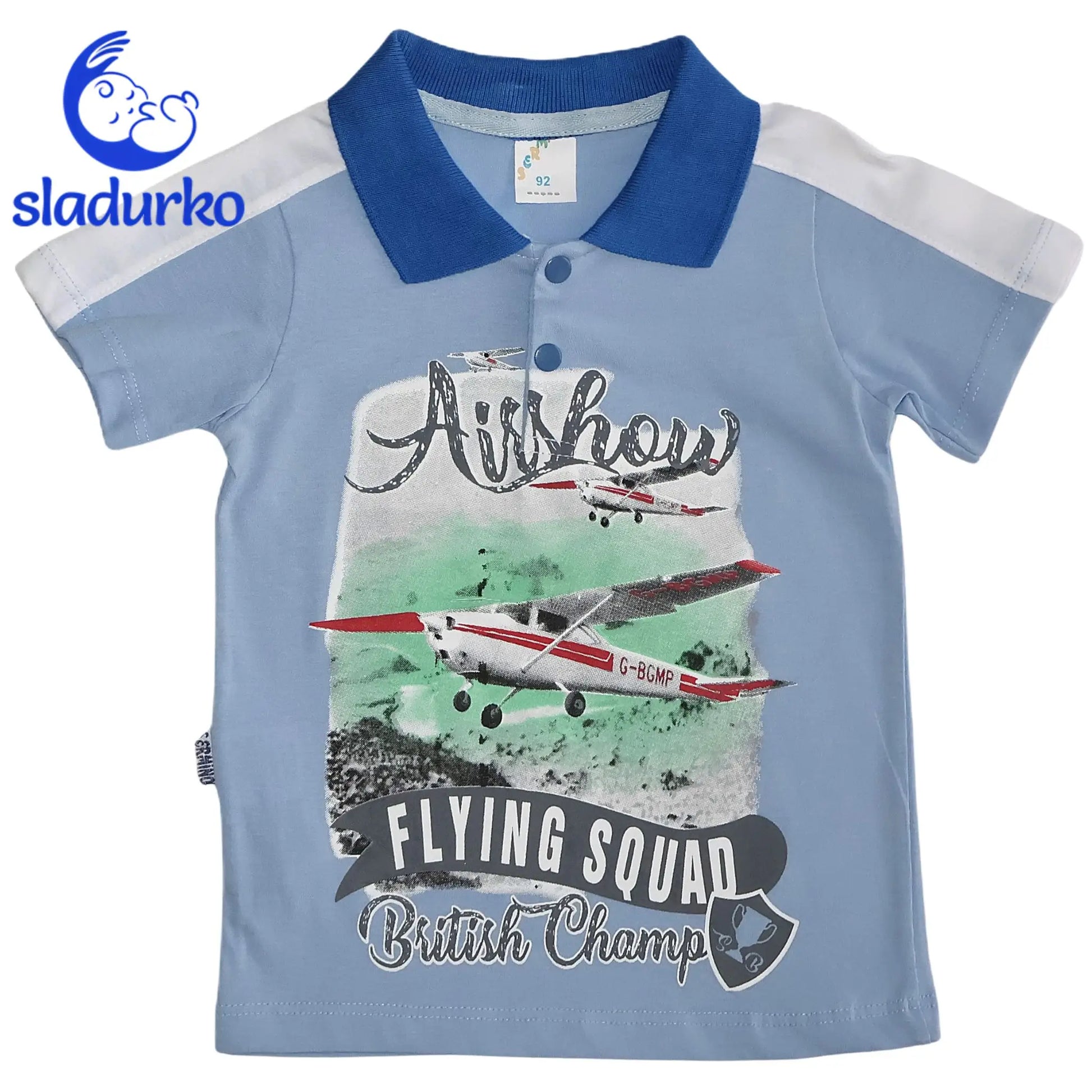 - Тениска : Светлосиня тениска с къс ръкав и тъмносиня яка. Декорирана с цветен принт на самолети. Закопчаване с копчета отпред. Бял акцент на раменете.