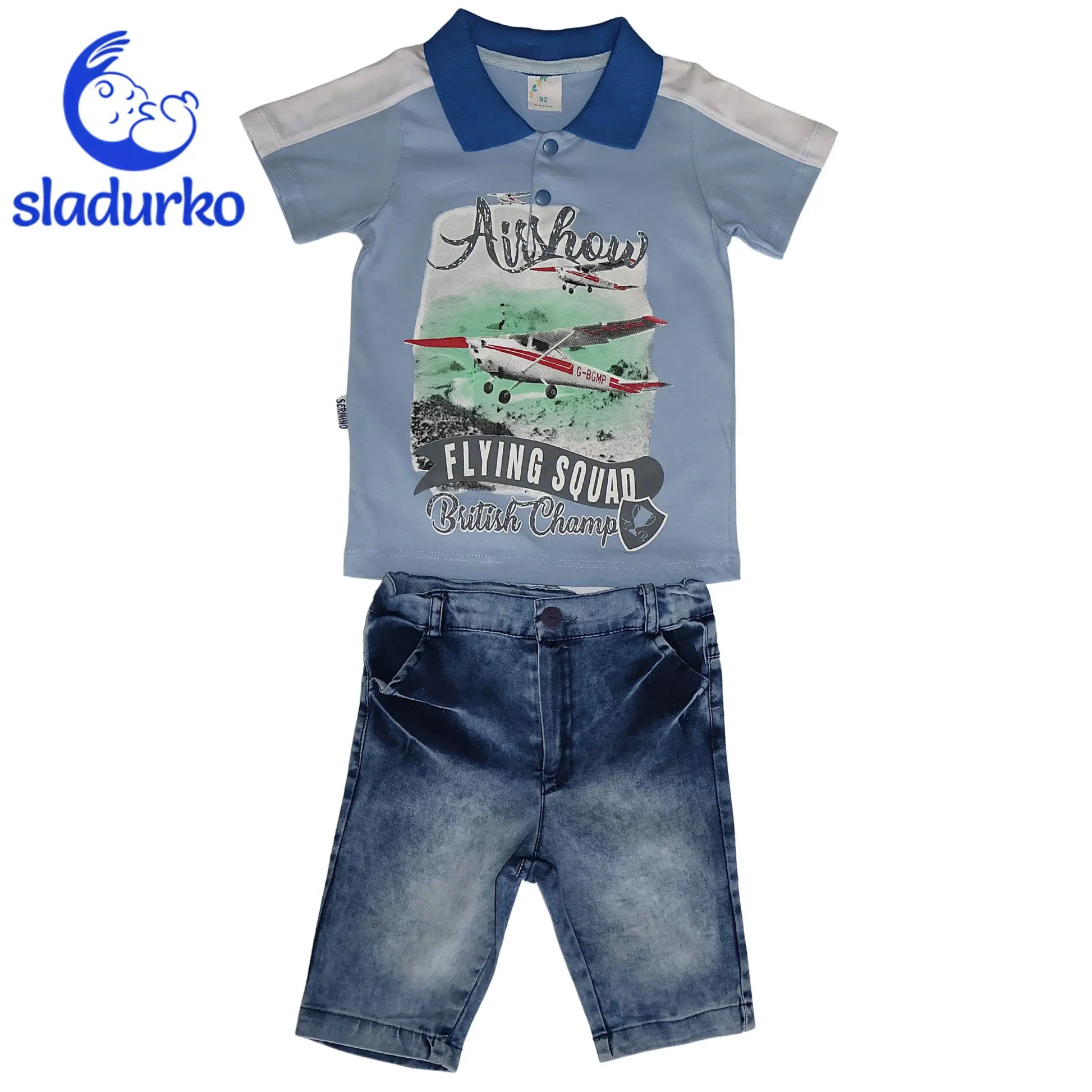 Пригответе вашето малко момче за летни приключения с този стилен и удобен комплект от две части! Включващ модерна тениска поло и дънкови панталонки, той е идеален за игри на открито и ежедневни разходки.