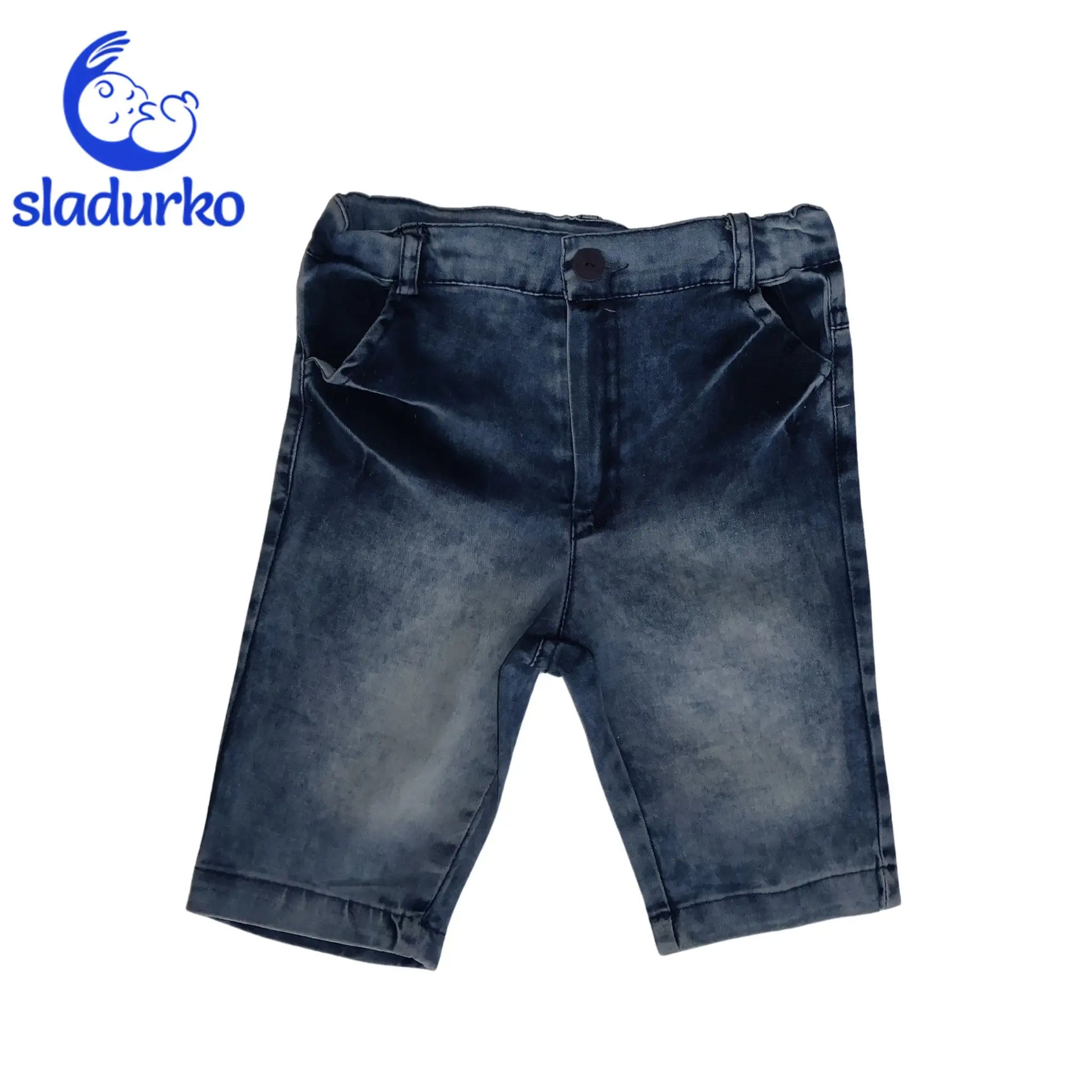 - Дънкови панталонки: Тъмносини дънкови панталонки с еластична талия . Закопчаване с копче и цип. Два предни джоба.