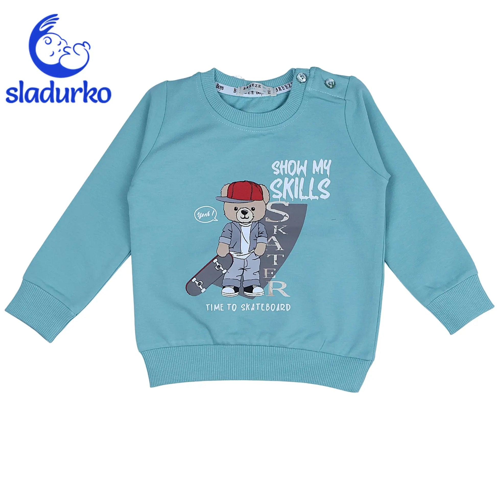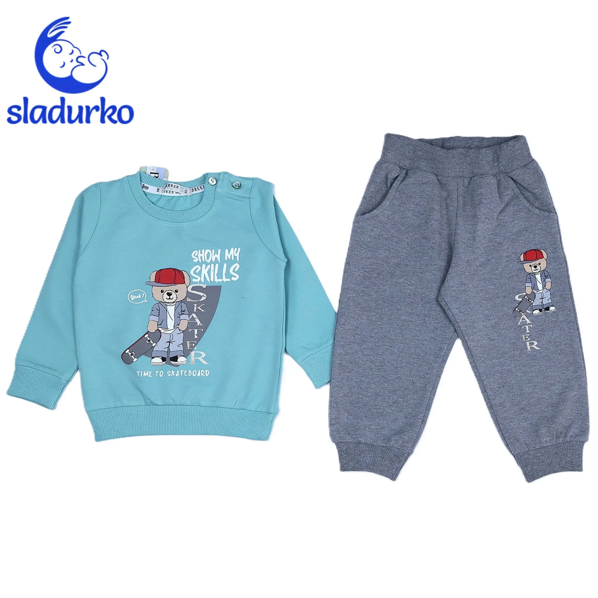 100% памук. Блузка с копчета на рамото ( само номер 104 е без копчета) . Панталонки с джобчета от плътен памук.Произведно в Турция.