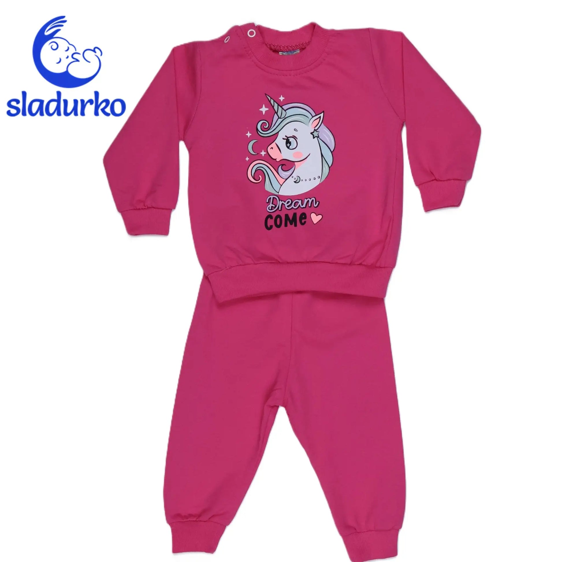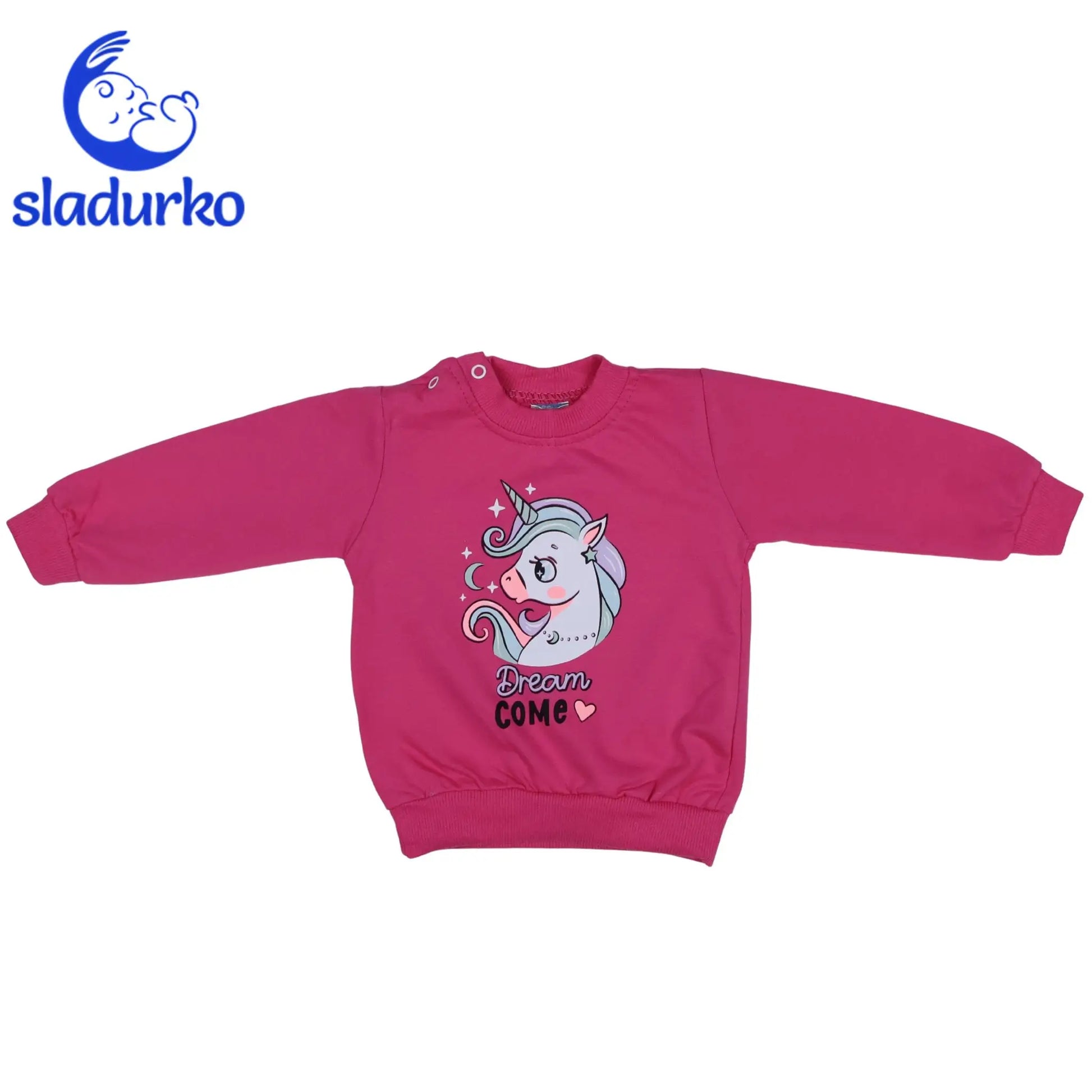 - Блуза: Изработена от мека и комфортна материя в розов цвят, с красив принт на еднорог и надпис "Dream Come True". С копчета на рамото за лесно обличане и сваляне, както и еластичен маншет на ръкавите и долната част за по-добро прилягане.