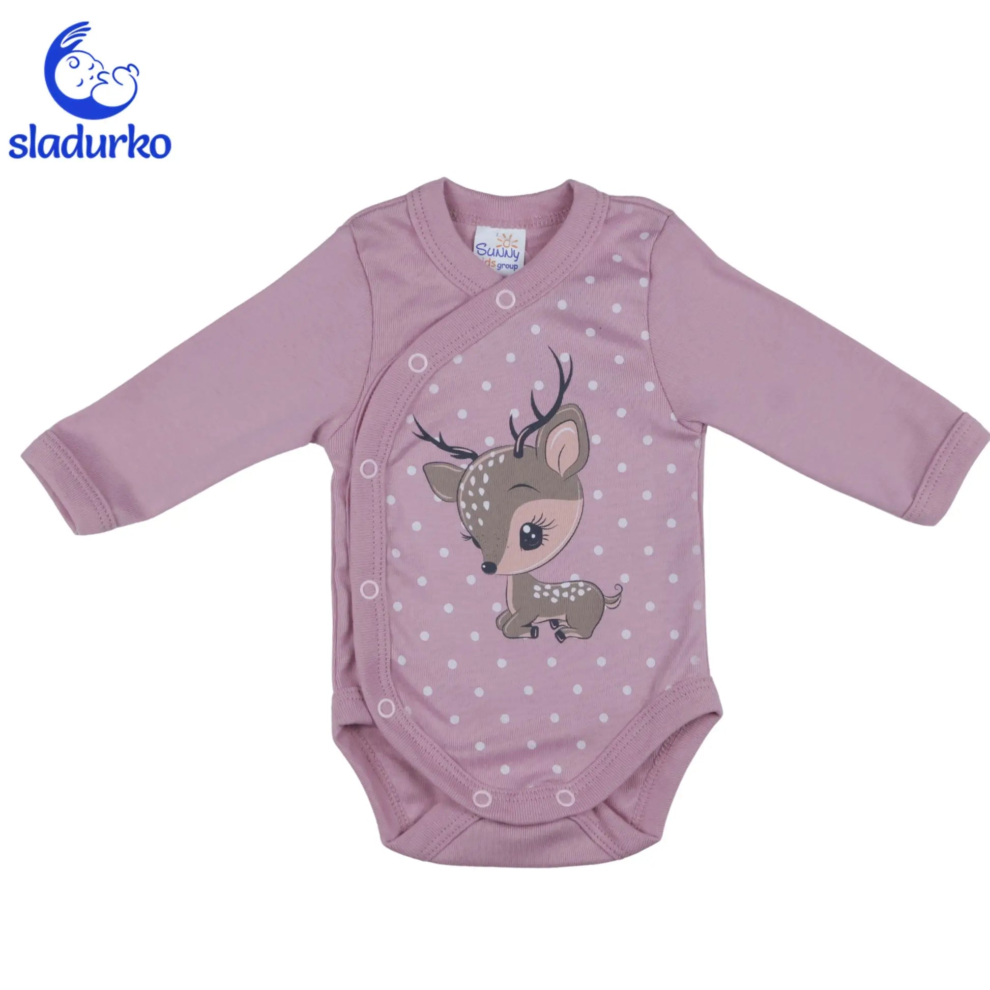 - Боди с дълъг ръкав: Удобно и практично за ежедневно носене, с нежно еленче, отпечатано отпред.
