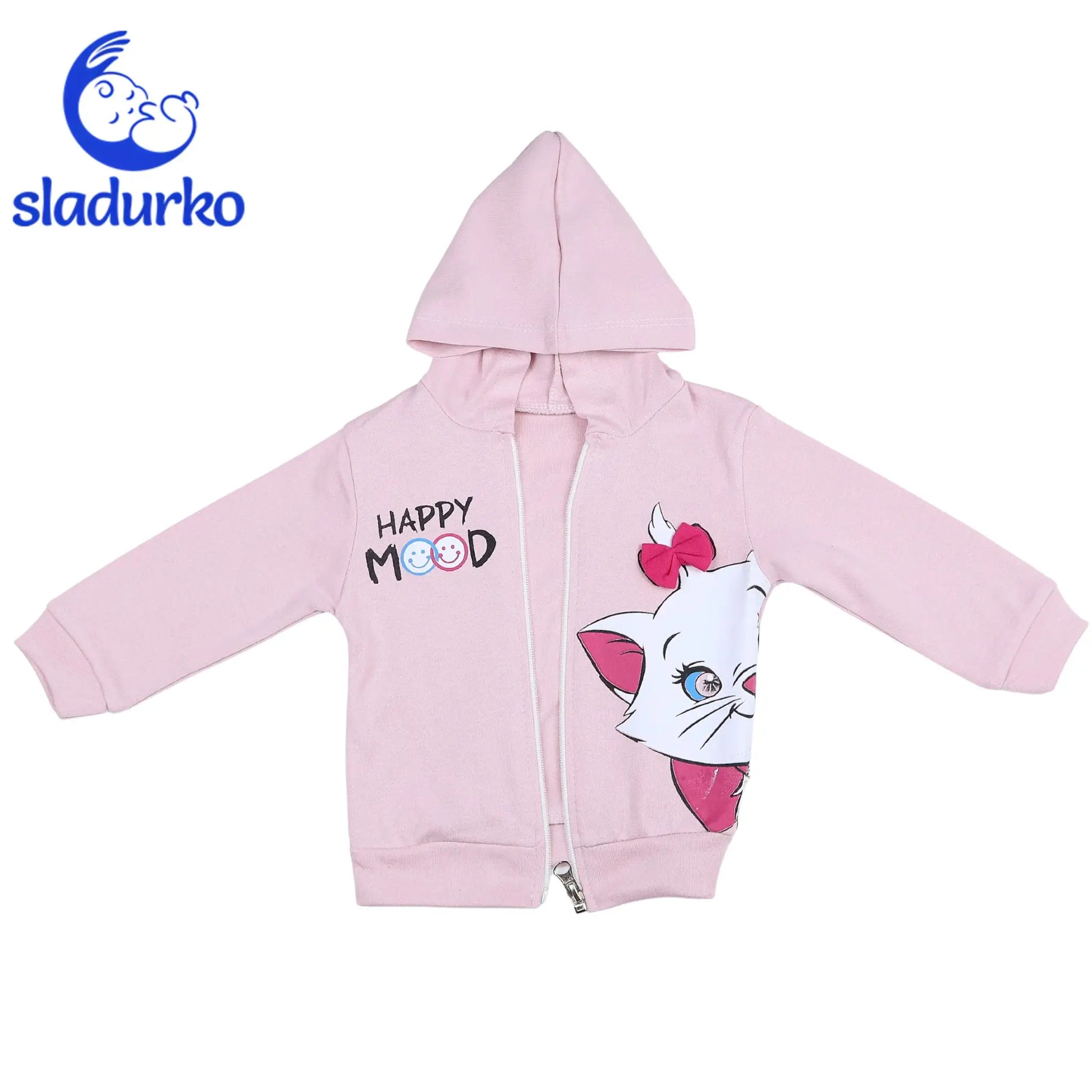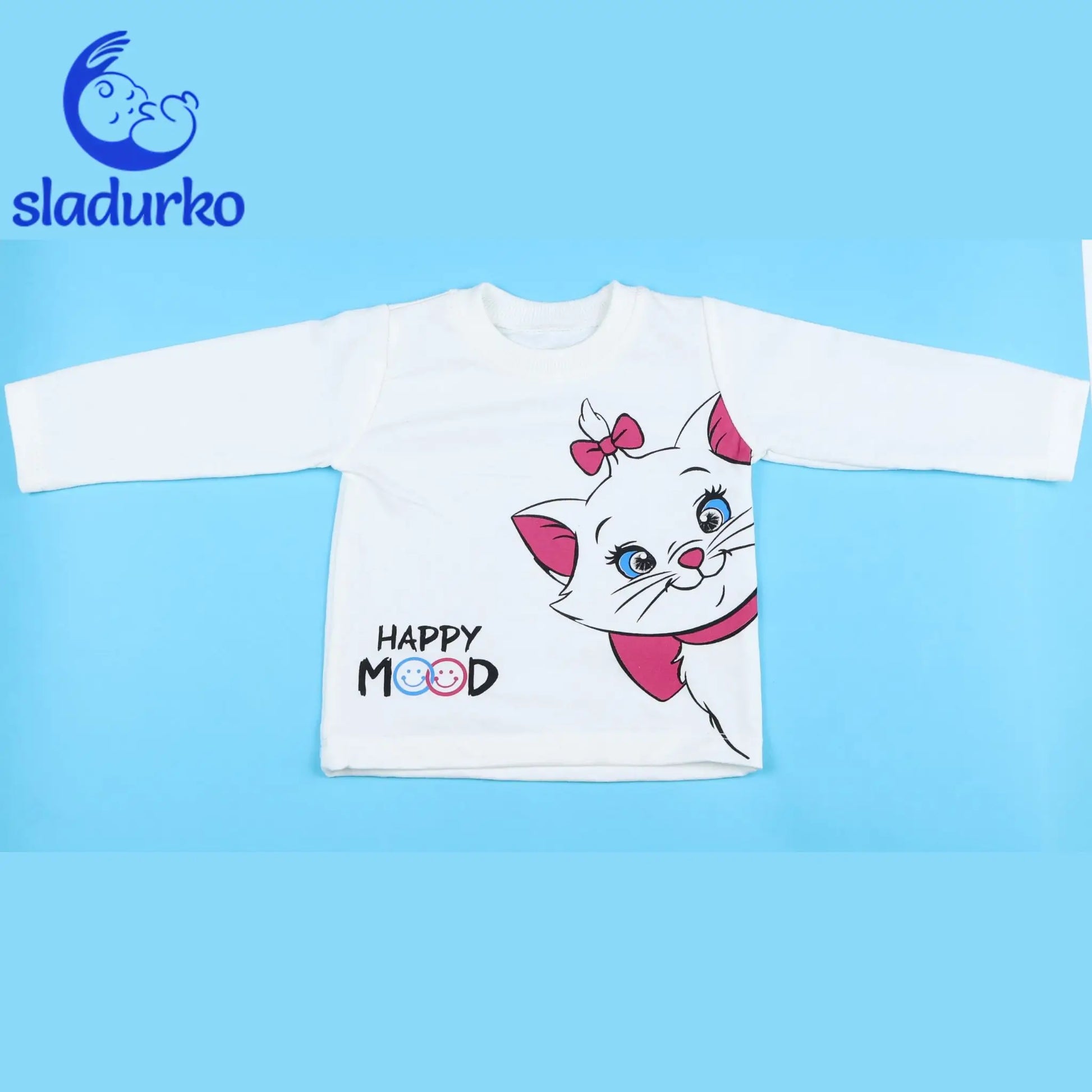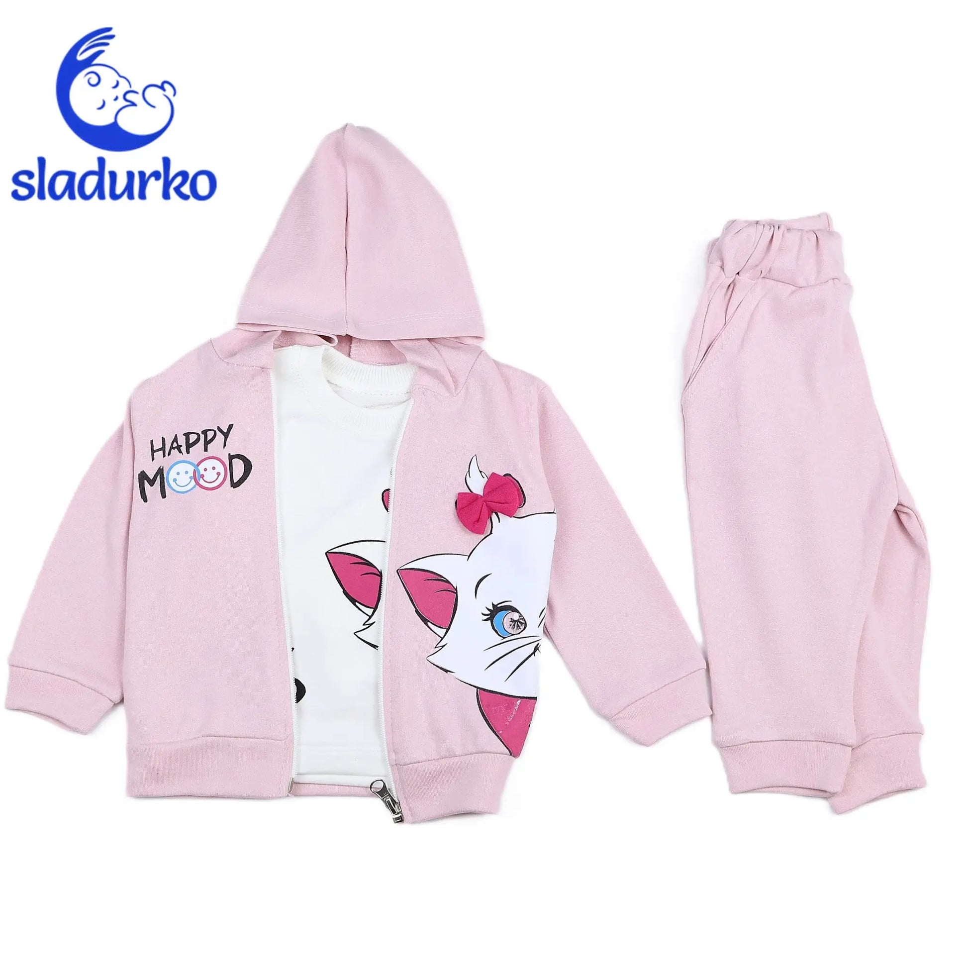 Розов суитчер, бяла блузка с коте и розови панталонки с джобчета