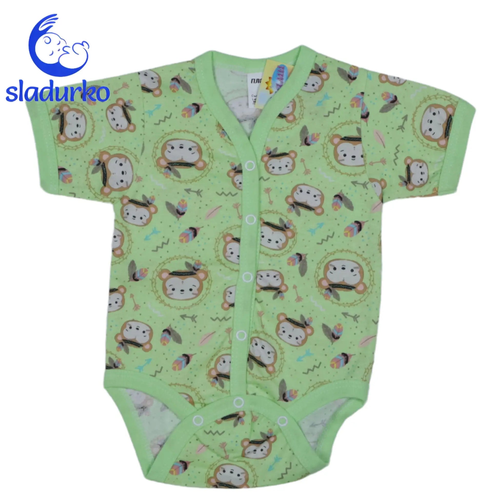 Бебешко боди с къс ръкав и предно закопчаване - Светлозелено