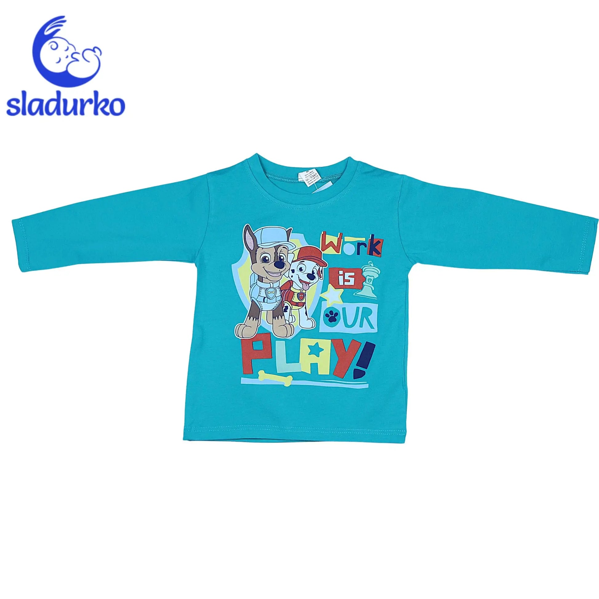 Изработена от мека и дишаща материя, блузката осигурява комфорт през целия ден и е подходяща за хладните сезони. Очарователният принт на кученца придава игрив и забавен акцент, който със сигурност ще зарадва всяко дете. Налична в размери от 86 до 98, тази блузка е идеална както за ежедневни разходки, така и за специални поводи. Произведено в България. Материя 95% памук 5% еластан.