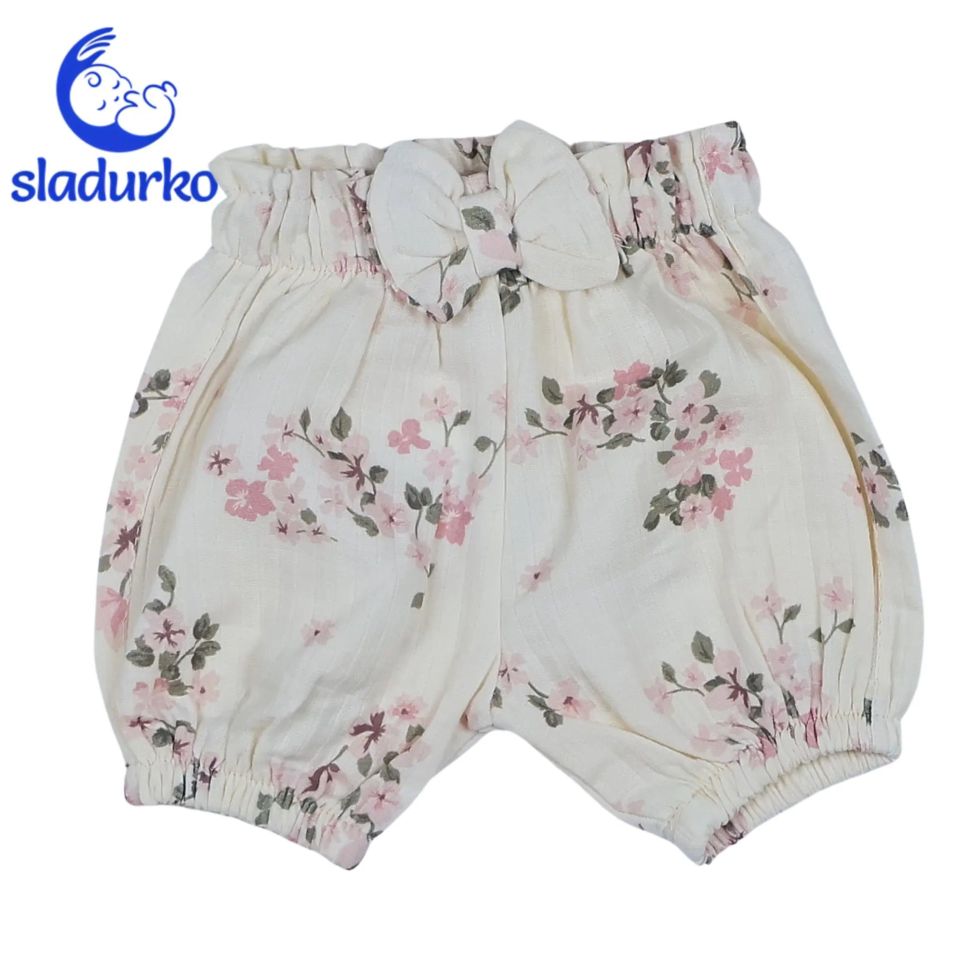- Буйки: Къси панталонки в светъл цвят с нежен флорален принт и еластична талия и крачоли.