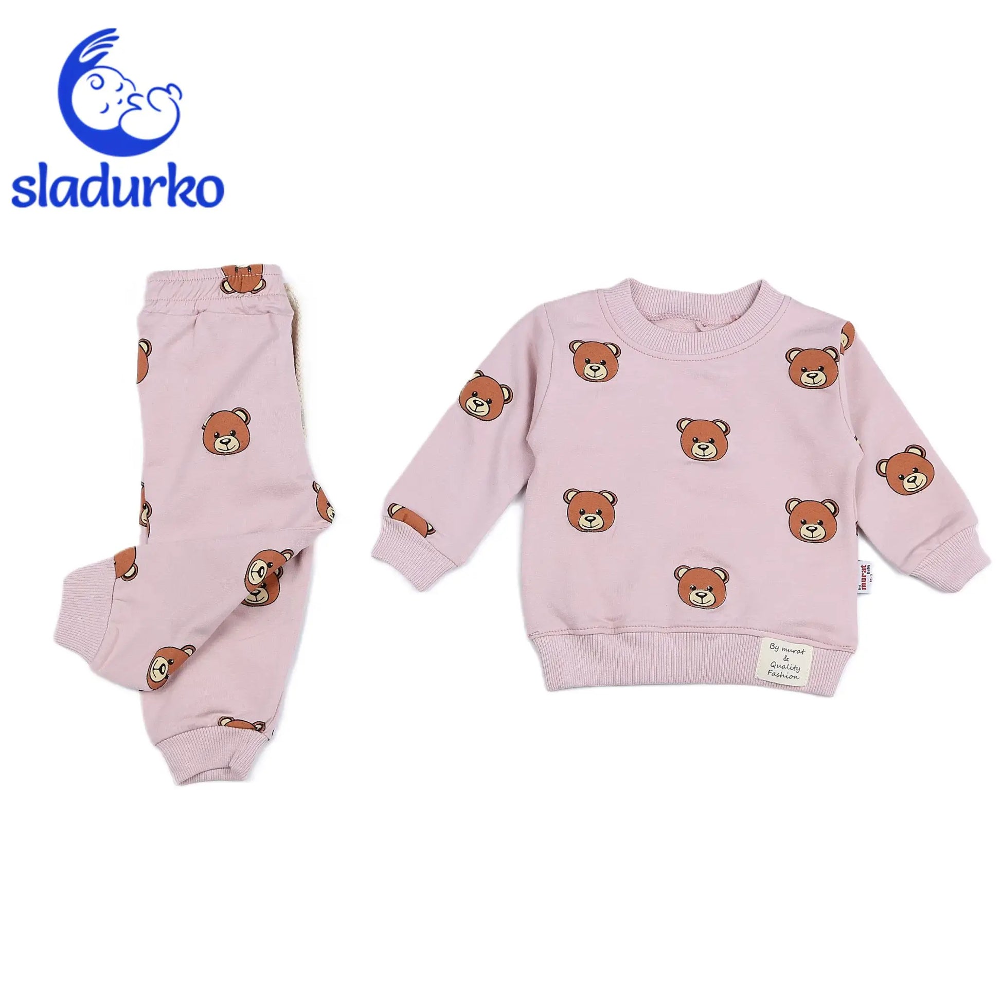 - Панталони: Панталони в същия синьозелен цвят с принт на мечета, които се съчетават перфектно с блузата. Еластичната талия осигурява комфорт, а ластиците в края на крачолите гарантират удобство и свобода на движение.