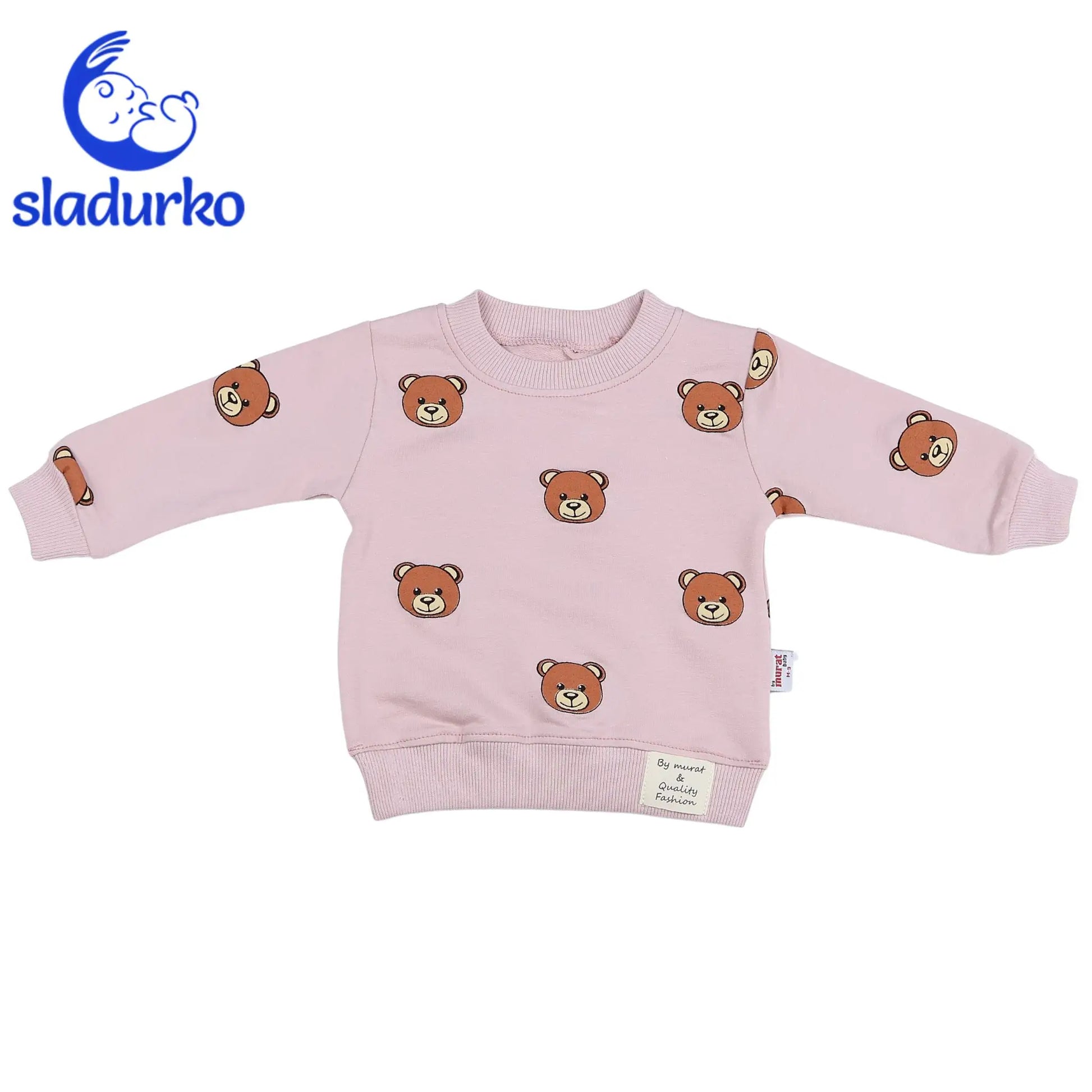 - Блуза: Блуза с дълъг ръкав в красив синьозелен цвят, украсена с принт на симпатични мечета, които придават забавен и стилен вид. Меките ластици на ръкавите и талията осигуряват удобно прилягане. Малък етикет в долния ъгъл добавя фин детайл.