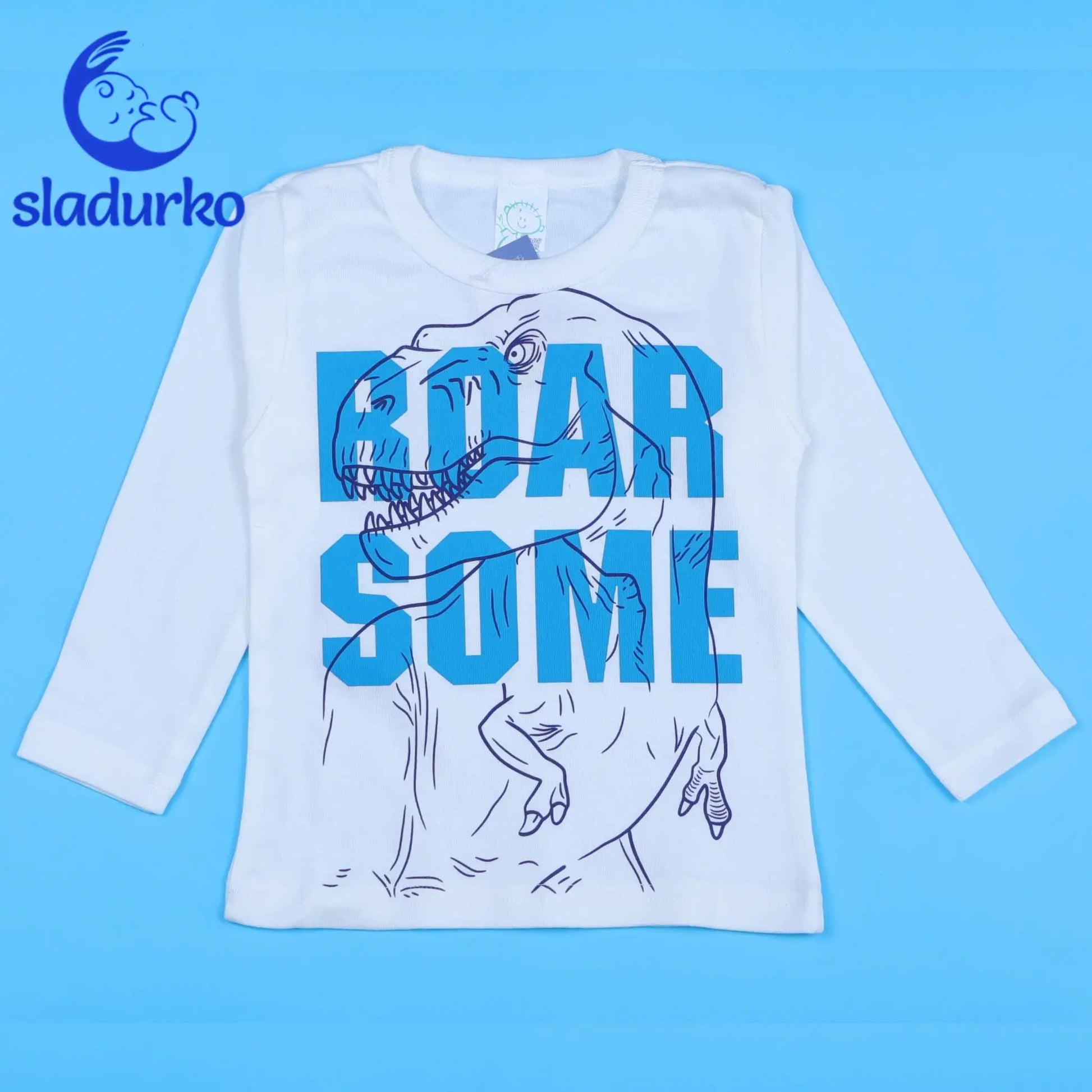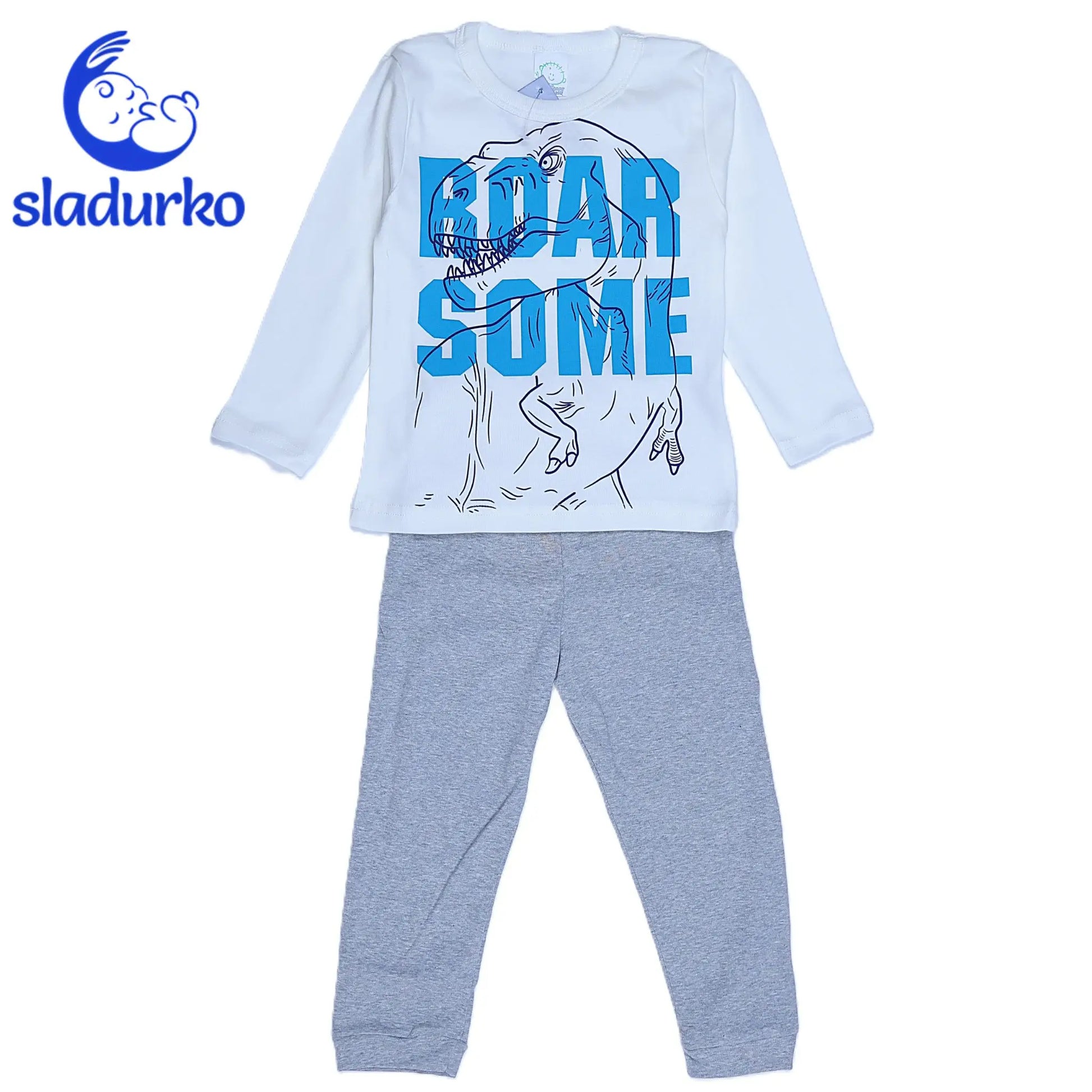 Пижама с дълъг ръкав, със сладък принт на динозавър и цветно долнище.