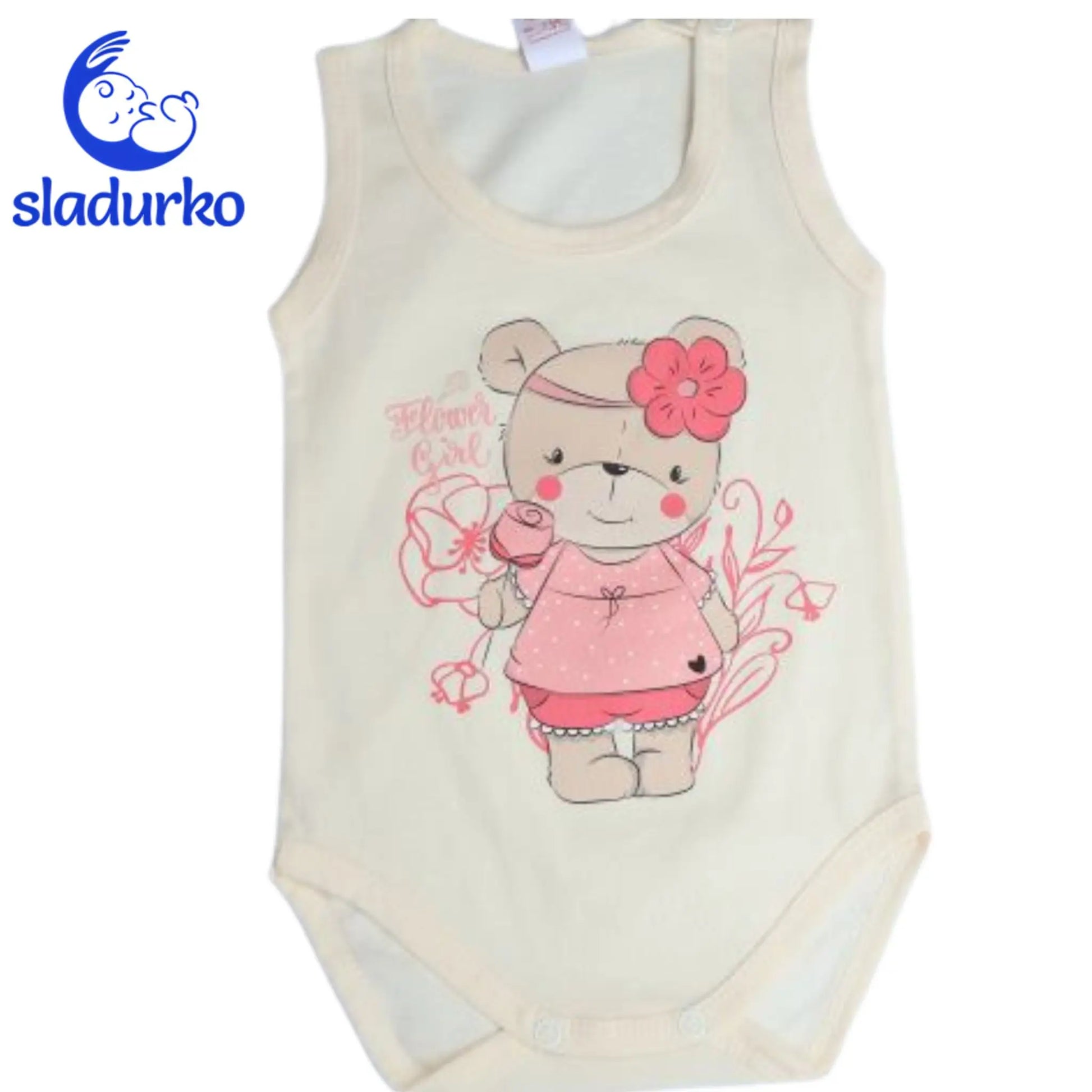 Боди на презрамки за момиче с тик так копче на рамото. Изработено от мека и дишаща памучна материя. Подходящо за всякакви поводи, лесно за съчетаване с други дрехи. Предлага се в различни размери. Може да се пере в перална машина, да се суши на ниска температура. Не гладете директно върху щампата.